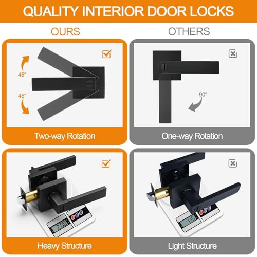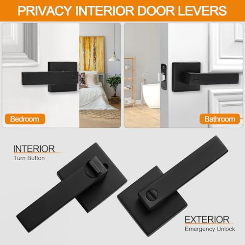 Menu 1. We require immediate payment. 2. We currently accept payment via eBay managed payments only. 3. Once payment is cleared, we will dispatch your shipment within 1-3 business days. Please refer to the "Shipping" tab for more information regarding shipping speed to your destination. 8 Pack Matte Black Door Handles Privacy Door Levers, Keyless Interior Door Knobs Square Door Levers Heavy Duty Door Locks for Bedroom Bathroom, Reversible Flat Levers Product description MODERN DESIGN: Simplistic line design looks bright and tasteful, giving you the sense of maturity,Suitable for a variety of decoration styles. Matte black finish is gentle and decent. It also gives you a smooth touch while enhancing the beauty of your room PREMIUM QUALITY: Heavy-duty door handle is made of premium quality zinc alloy and brass parts to rust-free in a high humidity environment. The door lever has a thick and smooth black color powder coating for long-lasting product life PRIVACY FUNCTION: The privacy door levers can be locked by twisting the button inside and opened outside in case of emergency with a flat-tipped tool such as a screwdriver or coin, ideal for use with bedrooms, bathrooms or offices, etc EASY INSTALLATION: All door handles are reversible and can be installed left-handed or right-handed. Privacy door handles come with all accessories and included installation instructions to help you complete the simple installation of the door handle lock in less time. Each of door handle is packaged separately to avoid scratches caused by collisions during transit ADJUSTABLE LATCH: Black door knob have adjustable universal latch - 2-3/8"(60mm) or 2-3/4"(70mm). Fits door thicknesses of 1.38"(35mm) to 1.78"(45mm). Dimensions: Lever Length: 4.6" (116mm), Rosette Diameter: 2.4" (61mm). Note : The square plate of the latch is unremovable PLEASE MESSAGE US IF YOU HAVE ANY OTHER QUESTIONS, AND MANY THANKS FOR READING ALL OF THIS. Copyright ©#. All Rights Reserved.