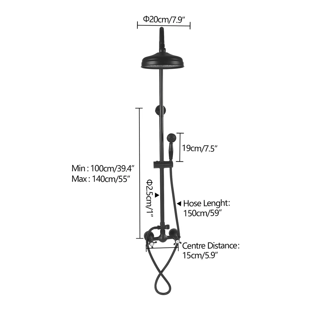 Details: Independent Cold/Hot Regulating Handle: It is designed with a cold/hot water independent control handle with cold and hot marks on them so that you can control the temperature more accurately. Standard Thread: It uses a US standard 1/2" NPT tapered thread, so it is easy to install and leak-proof. 59inch High-quality Spray Hose: The spray hose is smooth, easy to clean and free of kinks, and always provides great water pressure for your shower. Application: It can be used in bathrooms in homes, hotels, B&Bs and other places. Package Included: 1*Top Shower Head 1*Handheld Shower Spray 1*Slid Bar 1*Cold/Hot Regulating Handle 1*Spray Hose 1*English Manual All Accessories for Assembly Matte Black Exposed Shower Faucet 8 In Rain Hand Shower Mixer Double Knobs New Description~ Matte Black Exposed Shower Faucet Set Rain Shower with Handheld Spray Double Knobs Handle Dual Function Shower Fixture Combo System Unit Set Description Having a high-quality and beautiful rain mixer shower combo set can increase your comfort and happiness in life. Our rain mixer shower combo set has two spouts and an adjustable height to allow you to shower without space constraints. The matte black color gives it a premium look that will blend wonderfully with your bathroom and add a special style. Key Features Exquisite Appearance : Its elegant matte black square appearance is exquisite and elegant, which can be integrated into various home decoration styles. Comfortable Experience : The set mixes water and air to simulate a natural rain shower, providing you with the experience of natural contact with water. An 8-inch top shower head and a handheld shower spray make your shower very comfortable. It allows you to feel like standing in nature, enjoying the touch of rain. High-quality Material : It is made of high-quality brass. Compared with plastic materials, it has better heat resistance, pressure resistance and durability. Easy to Clean : Matte black finish prevents discoloration and rust, so you only need to wipe it with a soft cloth to prevent mineral accumulation. Intelligent Thermostat : It has an advanced pressure-balanced ceramic disc box, which can prevent scalding caused by sudden changes in cold and hot water pressure. Low Noise : The valve also has the additional function of preventing water hammer noise and allows you to enjoy a comfortable shower experience under natural raindrops. Considerate Design : Simply rotate the diversion knob to easily switch between the top shower head and the hand-held shower head to meet your family's different preferences. The shower height can be adjusted between 30-43 inches to accommodate people of different heights. Energy-saving : Compared with the traditional shower combination device, it uses air pressurization technology to save more water. Easy Installation : It only needs surface installation, and the existing shower can be easily modified without modification. We include all the installation hardware and installation instructions to help you install it faster. Details Independent Cold/Hot Regulating Handle : It is designed with a cold/hot water independent control handle with cold and hot marks on them so that you can control the temperature more accurately. Standard Thread : It uses a US standard 1/2" NPT tapered thread, so it is easy to install and leak-proof. 59inch High-quality Spray Hose : The spray hose is smooth, easy to clean and free of kinks, and always provides great water pressure for your shower. The 59 inch length provides great flexibility for targeted cleaning, washing after bath and bathing for children. Application It can be used in bathrooms in homes, hotels, B&Bs and other places. Specification Material: Brass Color: Matte Black Finish Type: Matte Black Number of Handles:2 Installation Type: Wall Mount Top Showerhead Diameter: 20cm/8inch Hole Center(Hot and Cold Water) Distance On The Wall: 12.7-15cm/5-6inch Slid Bar Height: Adjustable 75cm-110cm/30-43inch Slid Bar Diameter: 2.5cm/1inch Handheld Shower Spray Length: 19cm/7.5inch Spray Hose Length: 150cm/59inch Connection: NPT 1/2'' Package Size: 73*40*16cm/28.7*15.7*6.3inch Gross Weight: 2.8kg/6.2lbs Net Weight: 2.5kg/5.5lbs Package Included 1*Top Shower Head 1*Handheld Shower Spray 1*Slid Bar 1*Cold/Hot Regulating Handle 1*Spray Hose 1*English Manual All Accessories for Assembly Notes Please allow the slight color difference caused by the shooting light and 1-3cm error due to manual measurement, and make sure you do not mind before you order. tu1 Payment Delivery details Terms of sales About us Contact us Payment We accept ebay payment 。 Fees such as import duties, taxes are not included in the item price or shipping costs. These charges are the buyer's responsibility. Delivery details Shipping: 2-9 working days to: USA Terms of sales We maintain high standards of excellence and strive for hundred percent customer satisfaction. Feedback is very important to us. We hope that you contact us immediately before you give neutral or negative feedback, so that we can address your concerns. It is impossible to address issues if we do not know about them! About us Your satis faction is our ultimate goal. We work hard to earn your trust and future business. Our certified technicians have tested each item before shipping. The unit comes with 1 year limited warranty on all manufacturing defects. a) If you receive a defective item, you may return it or ask for a discount. Please contact us within 14 days after you receive the package. b) What you returned must be intact and in its original packaging as re? u. Customer is responsible for shipping costs of the returned item. c) We will cover the cost of shipping back t with the shipping rate indicated in the registration page. We will send you a new unit or refund the full payment you paid. Thank you. Contact us Business Hour Business Hour: Monday To Friday: 8:30 AM to 5:00 PM (Beijing China time) Due to time zones, our reply to your questions may n