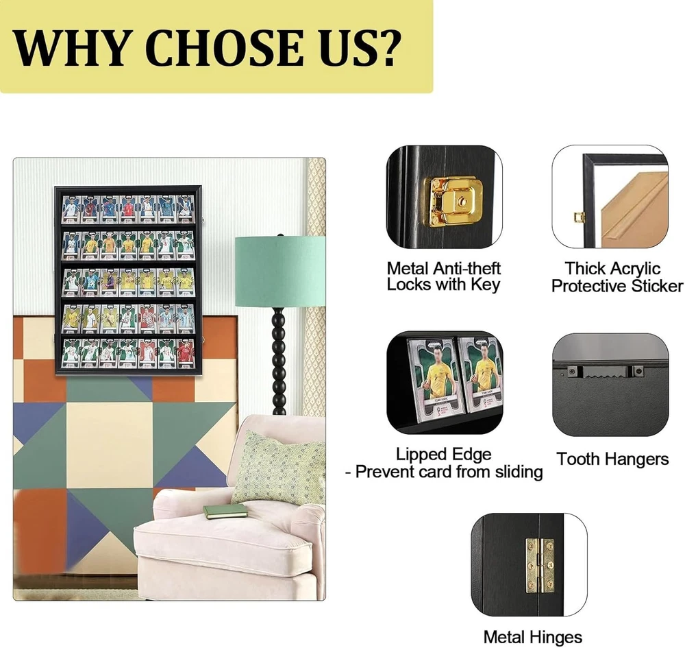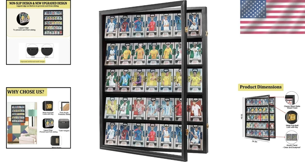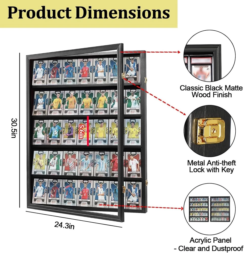 Matte Black Wall-Mounted Sports Card Display Case with Acrylic Glass - 30.5 Inch ‹ › ‹ › ‹ › ‹ › ‹ › ‹ › ‹ › ‹ › ‹ › Matte Black Wall-Mounted Sports Card Display Case Secure and showcase your cherished sports memorabilia with elegance. Key Features: Dimensions: 30.5" H x 24.3" W x 2.1" D Interior Height: 5.6" | Interior Depth: 1.1" Designed to accommodate all graded sports cards, including baseball, basketball, football, and hockey. Maximum card height: 5.5" Elegant matte black finished wood with royal gold-plated anti-theft locks. Luxurious velvet-like felt lining for a touch of sophistication. Shatter-proof acrylic glass panel offers 92% transparency and 98% UV protection to maintain your items' integrity. Benefits: Transforms your collection into stunning wall art, ideal for any environment. Perfect gift for collectors, enhancing the appreciation of their prized possessions. Vibrant display showcasing your pride and passion for sports memorabilia. Safe transport with foam protection and thick protective stickers to prevent scratching. Why Choose Our Display Case? Elevate your memorabilia collection with our Matte Black Wall-Mounted Sports Card Display Case, designed not just for protection but also to serve as a centerpiece in your home. The timeless black finish, combined with luxurious detailing and superior acrylic protection, ensures that your cherished cards are beautifully displayed while safeguarded against UV light and accidental damage. Ideal for serious collectors and enthusiastic fans alike, this display case is more than just storage; it's an opportunity to celebrate your favorite moments in sports history. Make a statement with your collection – order your display case today! Shipping Free & Fast Shipping - We offer free shipping to most of the USA with a normal delivery time of 3-7 days. However, due to the current situation, additional delivery time (up to 3 weeks) may be required for some items. Alternative Carriers - We may use alternative carriers (e.g. USPS, FedEx, UPS, etc.) to ensure your package arrives safely and on time. Due to the use of multiple carriers, we are unable to provide a tracking number automatically. Handling Time - Orders are processed and shipped within 1-2 business days of receiving cleared payment. Shipping Restrictions - Shipping to Alaska, Hawaii, Puerto Rico, Guam, and other US territories may incur shipping charges or delivery restrictions. Please contact us before ordering, or your order can be refunded/cancelled. State Restrictions - There may be restrictions based on your state of purchase. For example, certain items may not be shipped to California due to state regulations. Contact for Tracking Updates - If you require tracking updates or have any concerns about the delivery of your order, please feel free to contact us, and we will be happy to assist you. Return Please see our eBay Return Policy. Thank you. Payment We accept all major credit cards, PayPal, and Apple Pay for your convenience. Your payment information is secure and encrypted to ensure a safe and seamless transaction. Please complete your payment within 3 days of purchase to avoid any delays in shipping. Feedback Your feedback is extremely important to us. We strive to provide the best products and customer service possible. If you are satisfied with your purchase, please take a moment to leave us a positive review. If you have any concerns or issues with your order, please contact us before leaving negative feedback. We are committed to resolving any problems and ensuring your satisfaction. Contact Us If you have any questions or concerns, please feel free to reach out to our customer support team. You can contact us through the eBay messaging system. We are available Monday to Friday, 9:00 am to 5:00 pm EST, and we will do our best to respond to your inquiry within 24 hours. Thank you for supporting our small family business! UPC: Not Set Autograph Format: Not Set Material: Acrylic Glass,Wood,Velvet-like Felt Features: UV Protection,Lockable,Wall Mount,Shatter Proof,Anti-theft Locks,Felt Lining Type: Card Holder Brand: Unbranded Number of Toploaders/Card Holders: 1 Compatible Card Thickness: Thick Color: Black Compatible Card Size: Standard Card Holder Type: Not Set Year Manufactured: Not Set Country/Region of Manufacture: Not Set Signed By: Not Set Item Length: Not Set Item Height: Not Set MPN: Not Set Autographed: Not Set Inscribed: Not Set
