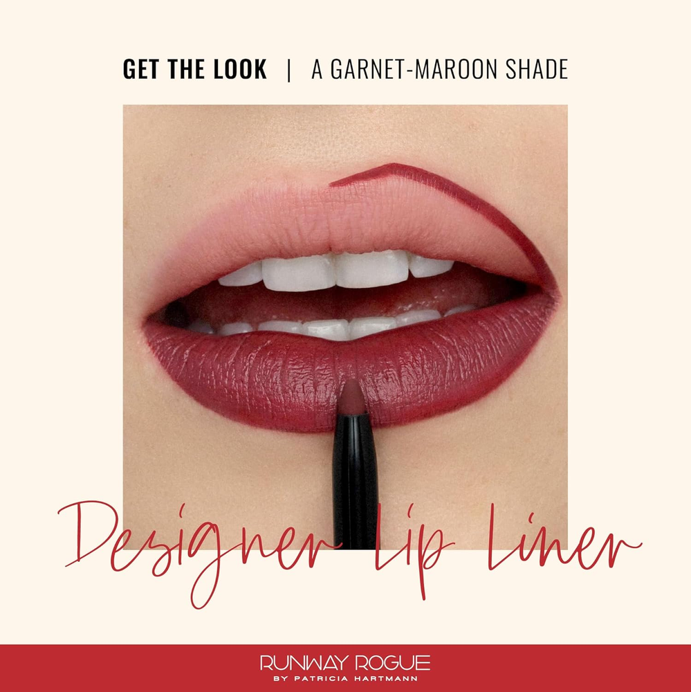 Designer Liner Lip Pencil, Matte Garnet-Maroon Lip Liner Pencil and Lip Liner Sharpener, ‘Get the Look’ MATTE LIP LINER PENCIL: Designer Lip Liner is a creamy matte lip pencil designed to help contour and enhance your natural lip shape, keep your lipstick in place, and prevent lipstick from feathering and bleeding while also improving its long wear and lip color. ‘Get the Look’ is a garnet-maroon lip liner shade. SHARP LASTING LIP LOOKS: Make your lip makeup last by using our non-feathering, non-bleeding, and smudge- and water-resistant matte creamy lip liner. Define and fill your lip shape, or wear the color on its own. The built-in sharpener helps with precise application. CREAMY VEGAN FORMULA: A pout you feel good about! Our cruelty-free, vegan lip liner is long-lasting and features anti-aging peptides, smoothing shea butter, and 3D Chroma Technology with palmitoyl tripeptide-1 to help fill in fine lines and visually plump lips. APPLY LIKE THE PROS: Define your lips by lining out toward the corners. Get fuller lips by drawing over the edge of your natural lip line, or fill in the entire lip. Recap to protect the formula. Pair this lip pencil liner with liquid or traditional lipstick, or use it as a lip gloss definer. RUNWAY WORTHY, MADE FOR REAL LIFE: Founded by ’90s supermodel and cover girl Patricia Hartmann, who was mentored backstage by makeup legends, Runway Rogue creates luxurious, easy-to-use lip products for on-the-go women who desire the runway look without the runway hassle. Elevate your every day with Runway Rogue, where glamour meets convenience, and make every moment your real-life catwalk. Product Description The video showcases the product in use. The video guides you through product setup. The video compares multiple products. The video shows the product being unpacked. 1 APPLY LIKE THE PROS 2 DEFINE THE LINE 3 FOR A FULLER LOOK Our Collections Add to Cart Add to Cart Add to Cart Add to Cart Customer Reviews 4.3 out of 5 stars 512 3.9 out of 5 stars 376 4.0 out of 5 stars 852 4.0 out of 5 stars 730 Price $22.00 $ 22 . 00 $29.00 $ 29 . 00 $29.00 $ 29 . 00 $27.00 $ 27 . 00 Finish Matte, creamy Matte meets moisture Shiny, shimmery Silky, shimmery, high-pigment Type Lip liner Lipstick case Tube liquid lipstick Lip gloss Features Smudge- and water-resistant No feathering or bleeding Transfer-proof formula Protects and restores lips Number of Shades 10 7 Silk Glam: 9; Pearl Glam: 8 5 Vegan/Cruelty-Free ✔ ✔ ✔ ✔ Dimensions 1.83 inches x 5.25 inches x 0.88 inches. Weight: 0.32 oz Specifications Item model number DL13 Color Get the Look Item Form Pencil Product Dimensions 5.25 x 1.83 x 0.88 inches; 0.32 ounces Country of Origin USA Skin Type All Finish Type Semi-Matte Creme Velvet Shipping: Shipped from the USA. Fast delivery within 2–3 days. Payment: PayPal, credit card, bank transfer. Returns: 30-day free return – we cover the shipping cost. Quality: Made in Europe/USA/China. No customs fees. VAT invoice on request. Feedback: You’ll automatically receive positive feedback after payment.