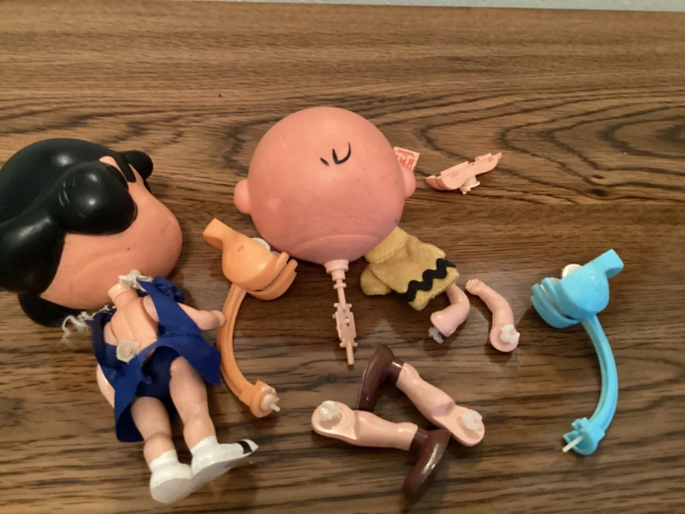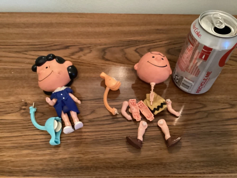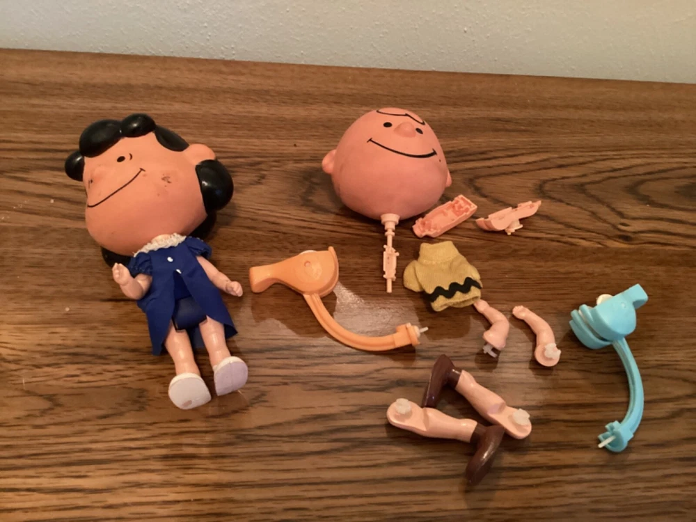Mattel 1968 Walking Doll Toy Lucy / Charlie Brown Doll Peanuts Character Vintage. Used….Lucy is in tact. Charlie Brown is in pieces…but, I think they are all there.