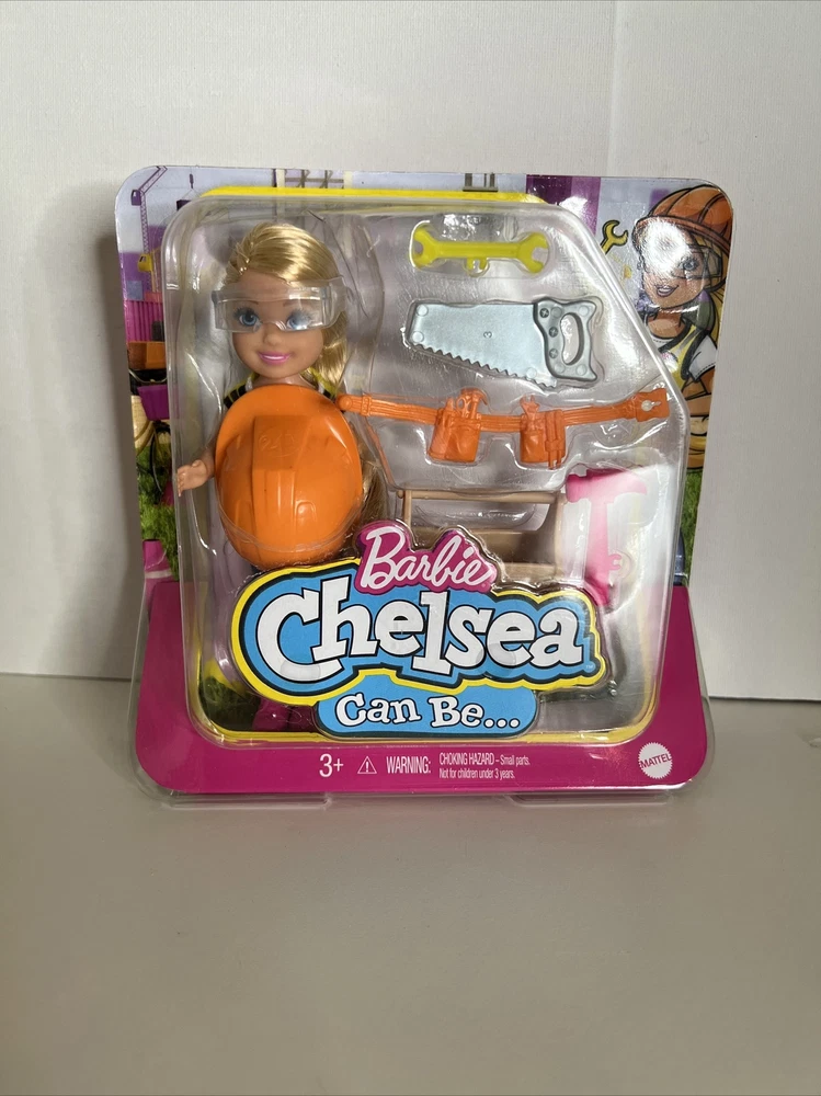 Mattel Barbie Chelsea Can Be a Construction Worker Playset 5” Doll NEw in sealed packaging. Includes doll, hard hat, tool box , tools, safety googles and outfit that she’s wearing. Great Christmas gift!