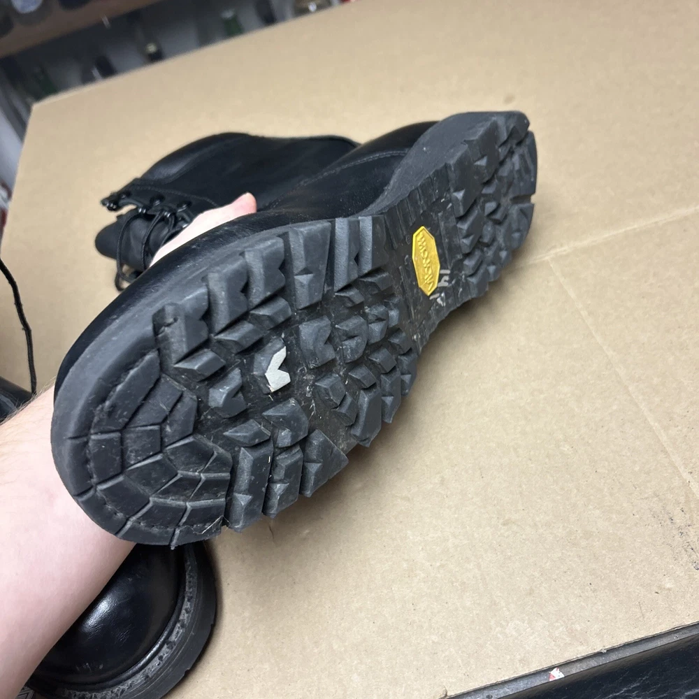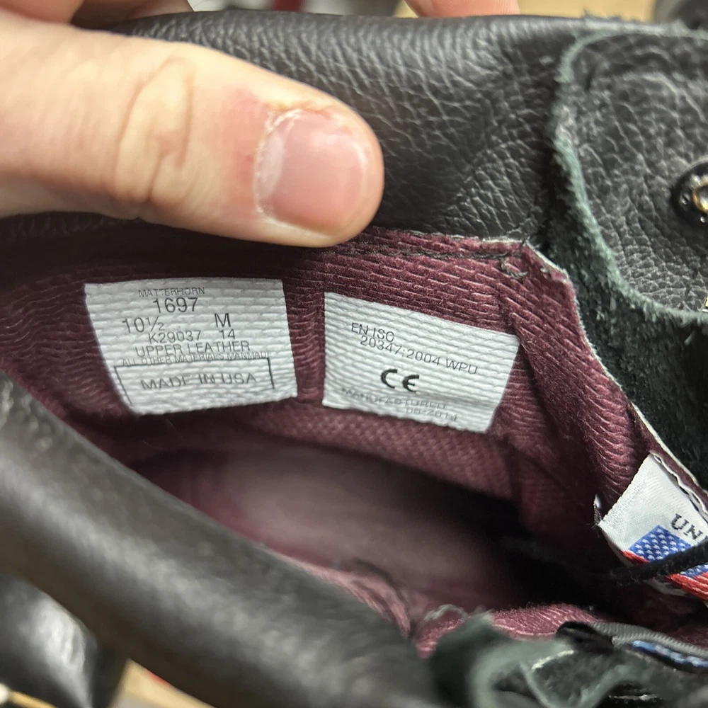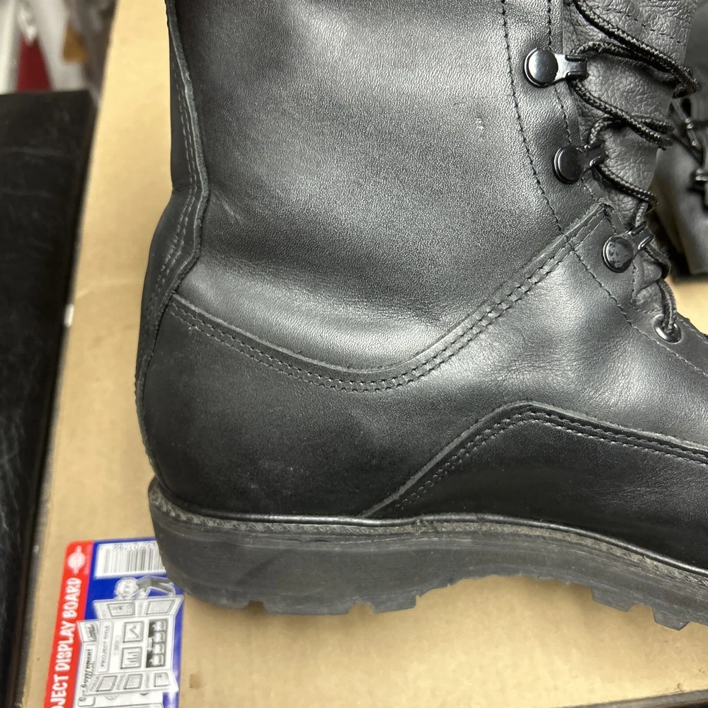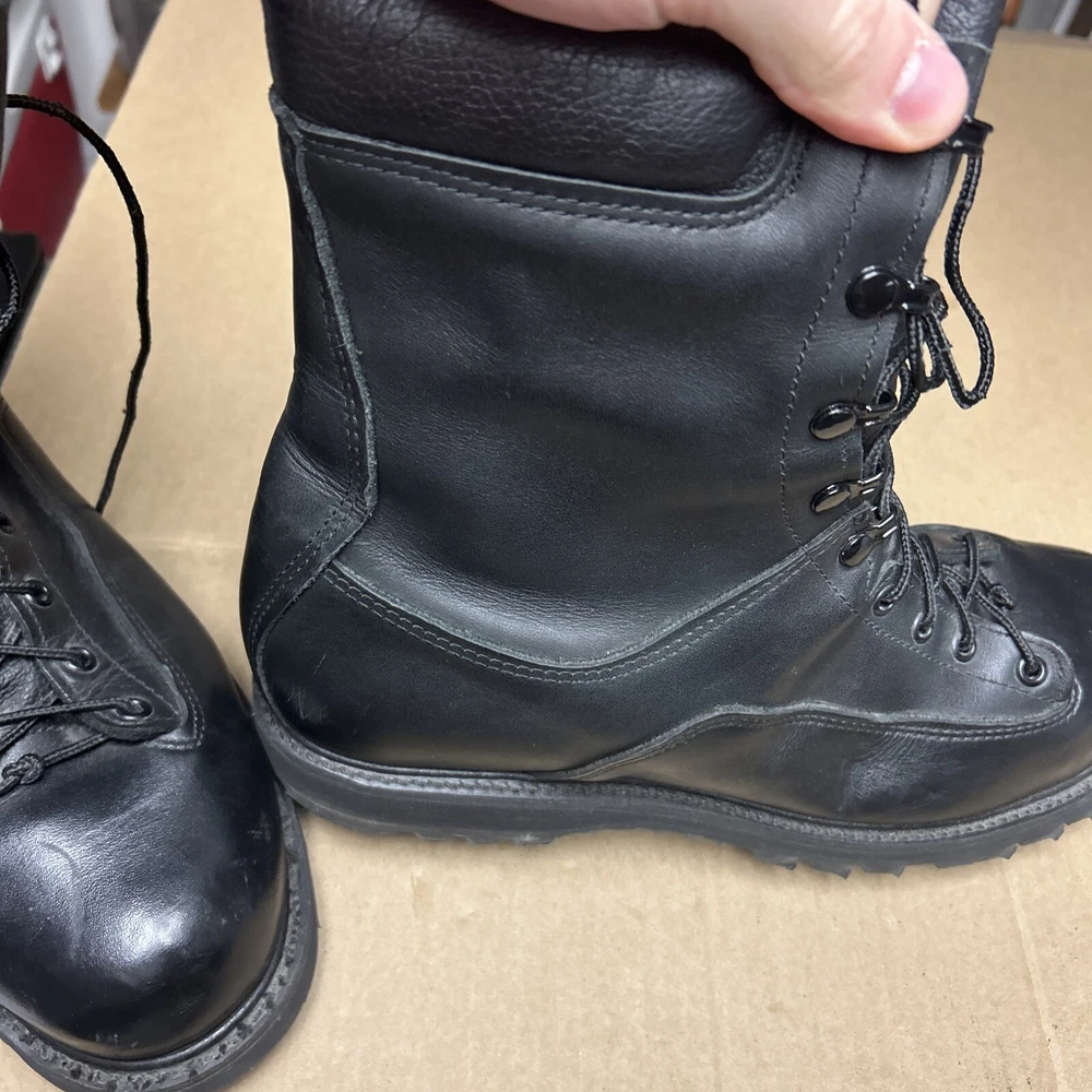 The boots have some marks and signs of wear to them. The laces have some wear to them. There is some indentation in some places. See pictures to see the item.