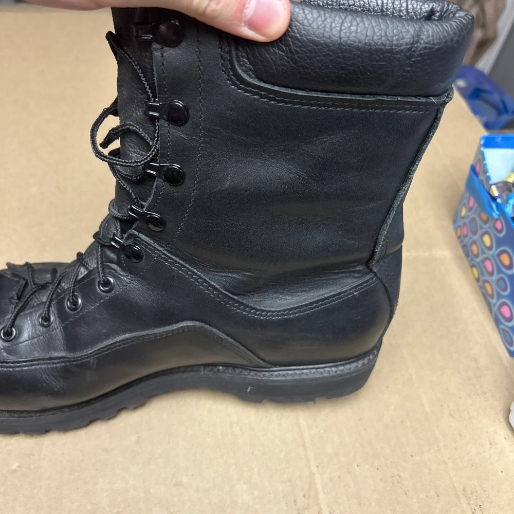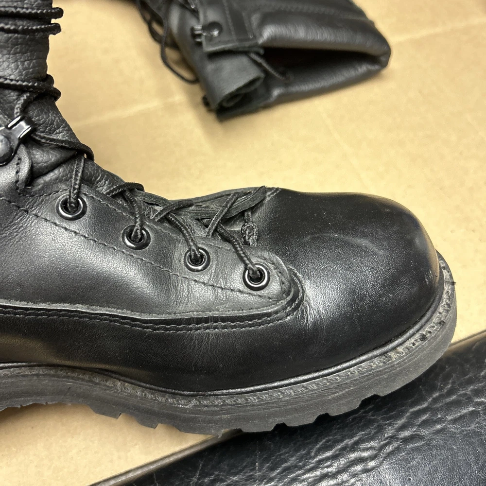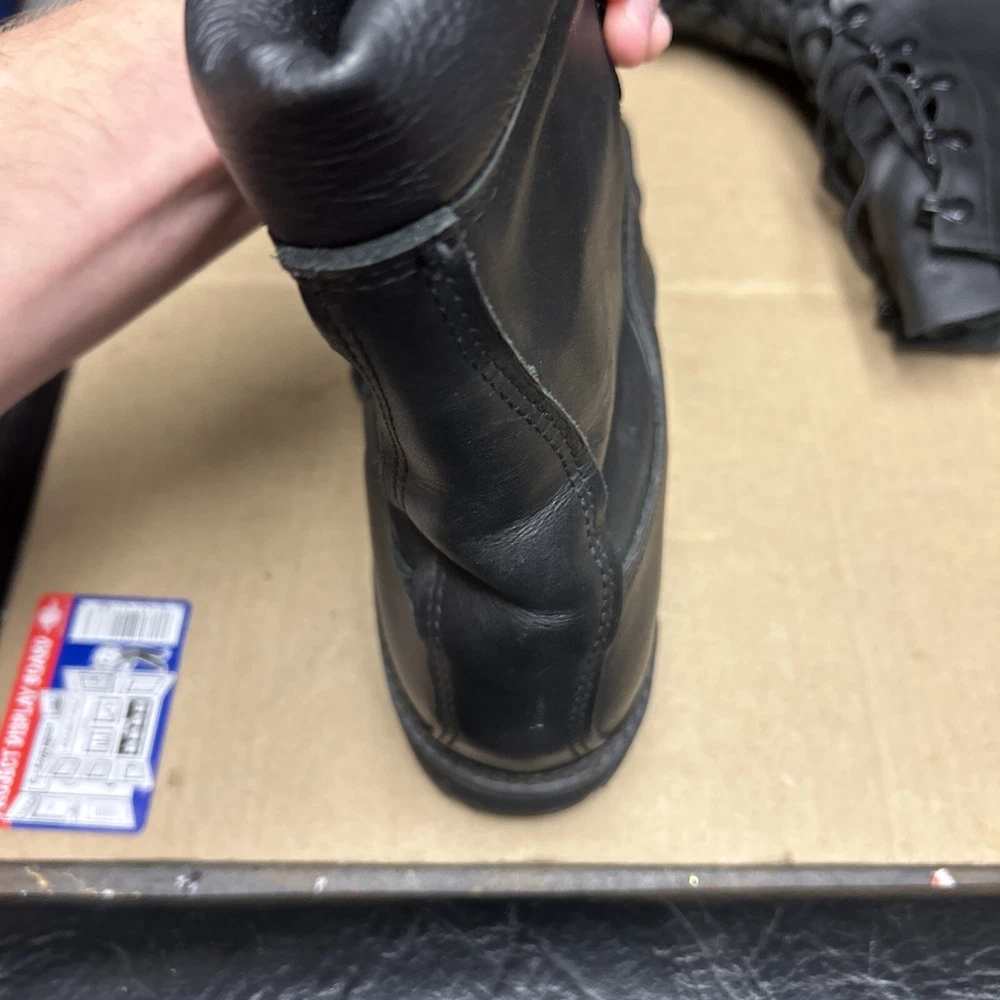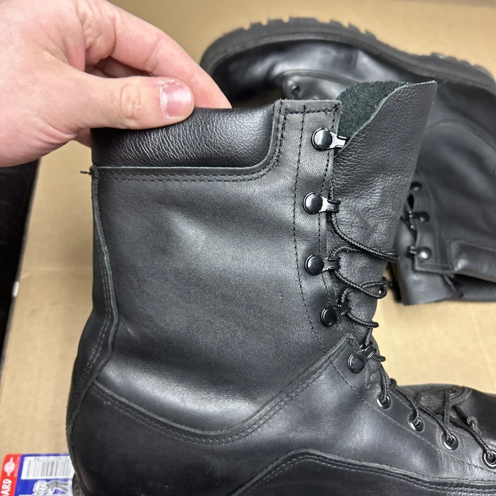 The boots have some marks and signs of wear to them. The laces have some wear to them. There is some indentation in some places. See pictures to see the item.