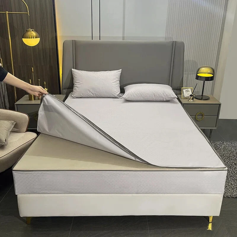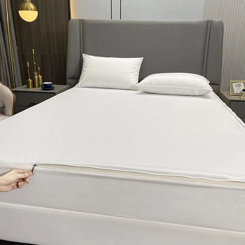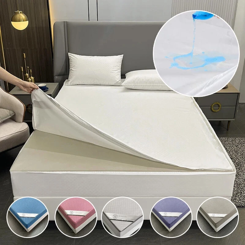 Please noted: Supports customized sizes(Length, Width, Deep), please contact customer service for pricing. If you need pillowcase, please choose "2xPillowcase 48x74cm", thanks Product Name: 100% Waterproof All Inclusive Mattress Cover Feature: Breathable, Noiseless, Comfortable, Isolate mites, Anit-bacterial Season: Spring, Summer, Autumn, Winter Feature: 100% Waterproof : Waterproof Mattress Protector Bed Deep Pocket is Zippered Mattress Encasement and it is 100% Waterproof from top sides. Works great for sweaty sleepers, people who eat in bed, couples with young children or pets.Zippered Waterproof Mattress Cover also prevents from bad smells. Premium Protection: Waterproof Mattress Protector Zippered Encasement is waterproof, offers premium protection against liquids ,accidentail spills,stains and moisture, helps in keeping clean your luxury mattress. Featuring impermeable Polyurethane membrane,which does not allow the liquids to reach the mattress. so it encases and seals the mattress entirely to safeguard the sleepers ensuring a comfortable sleep. Smooth and Noiseless: Our Bed Waterproof Mattress Pads zippered are made of soft and smooth fabrics that can be wiped off with wet cloth and fully machine machines and polyurethane backing makes them almost non noisy and undetectable under the sheets.
