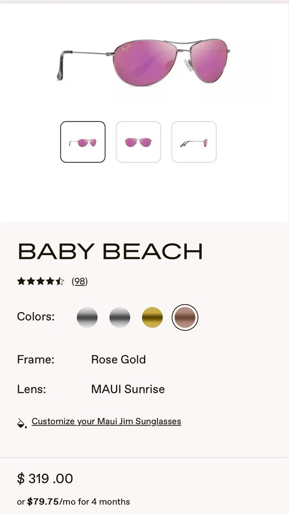 Maui Jim Mj-245-16R Baby Beach Sunglasses Silver Womens 56-18-120 Frames Only