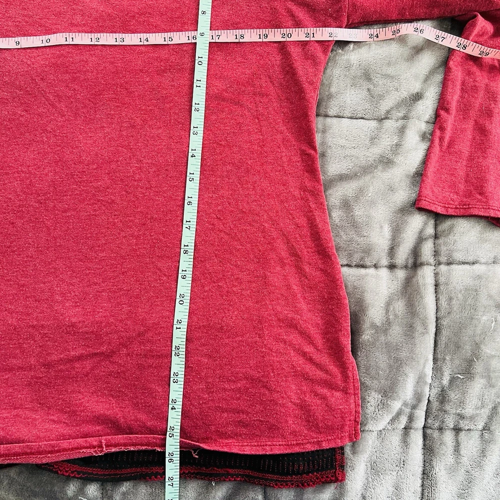 This Maurice's tunic top is a stylish and lightweight option for women, featuring long sleeves and a V-neckline in a rich burgundy red color. The shoulders are embellished with studs, adding a touch of glamour to the casual sleeve design. Made from a blend of polyester and cotton, this tunic offers a comfortable fit in size L. Ideal for the winter, fall, and spring seasons, it can be easily pulled over for a chic and effortless look. See photo(s) for measurements. Color in photos may not be an accurate respresentation of actual color due to lighting. ABOUT ME: • I accept reasonable offers • Next business day shipping • New items posted daily • Smoke free home
