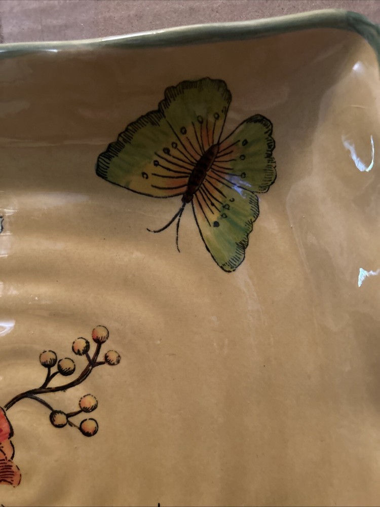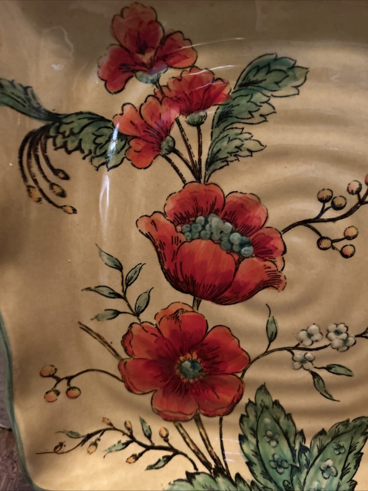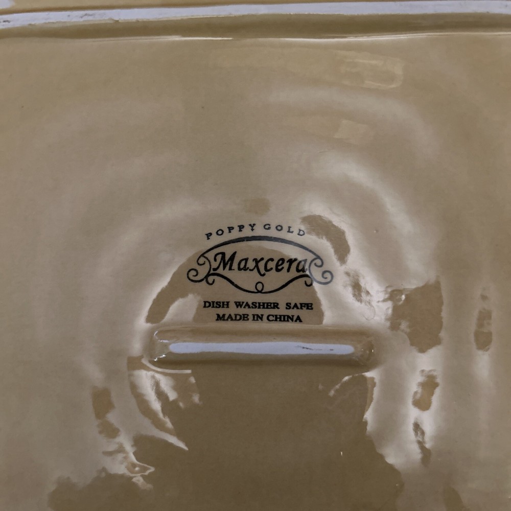 This elegant dinner plate from Maxcera features a stunning poppy design on a gold ceramic base. The square shape adds a contemporary touch to any dining setting, while the multicolor palette makes it easy to coordinate with other tableware. Perfect for special occasions or everyday use, this plate is sure to impress guests and family members alike. It is 11 1/2”.