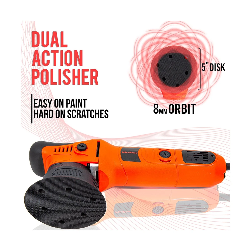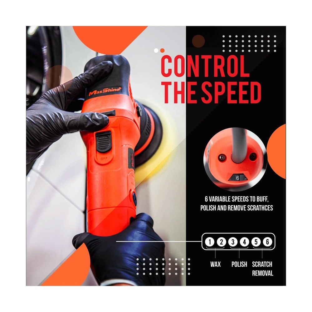 Maxshine M8S V2 Dual Action Polisher Car Detailing Kit - 1000W, 6-Speed, 8mm Throw, 5" Disc, Thread 5/16" - Car Detailing Supplies for Auto Paint Protection, Restoration & Scratch Repair Description Features: Powerful 1000W Motor: Experience exceptional results with the Maxshine M8S V2 Dual Action Polisher. Its 1000W motor is perfect for detailing supplies and detailing kit needs, ensuring top-notch finish and reliability. Easily Adjust Your Speed - Unlike other car polishers and buffers, the M8S V2 car polisher has six(6) variable speeds, allowing you even to refine it by 1/2 step increments. Lock in your preferred polishing machine speed and start detailing. Built for Strength and Durability - The M8S V2 buffer for car detailing is designed to be a part of your detailing tools for years to come. We consistently push our auto buffers and polishers to the limit in our car detailing garage in California. 5-Inch Disc Compatibility: Compatible with 5-inch discs, this auto detailing tool is designed to enhance your detailing experience. This car detailing kit is a must-have in every car cleaning products collection, providing unparalleled maxshine detailing. Thread 5/16" for Easy Use: Designed with a 5/16" thread, this polisher ensures ease of use for both car and SUV detailing products. It stands as an indispensable part of your detailing supplies, offering efficiency and reliability in all your detailing endeavors. Specific: Dimension and weight: 13.4(L)x3.5(W)x5.4(H), 5.11 LBS; Power: 1000W, Throw: 8mm, Speed(Min, Max): 2,500~6,500 OPM Product Details: Brand: Maxshine Included Components: 5 Inch Backing Plate, Adjustment Tools, DA Polisher Material: Plastic Color: 8mm M8s V2 Red Product Dimensions: 15.3"D x 6.3"W x 6.1"H Power Source: Corded Electric Speed: 6500 RPM Item Weight: 5.11 Pounds Amperage: 8.33 Amps Voltage: 12 Volts Maximum Power: 1000 Watts UPC: 719704935869 Manufacturer: MaxShine Part Number: M8SV2 Item Weight: 5.11 pounds Product Dimensions: 15.35 x 6.3 x 6.1 inches Item model number: M8SV2 Wattage: 1000 watts Item Package Quantity: 1 Sound Level: 85 dB Handle/Lever Placement: Top Batteries Included?: No Batteries Required?: No Warranty Description: Manufacturer Warranty Date First Available: May 5, 2022 Delivery We Do Not Ship Outside of the Continental US. Return Policy All items qualify for returns within 30 days of receipt. Buyer is responsible for return shipping on any item that is not damaged. Feedback We take our reputation seriously, we buy and sell online, so we understand the value of trust. If you are unsatisfied with your order, please contact us and we will work with you to resolve it to your satisfaction.