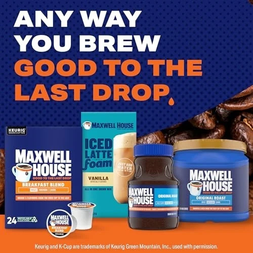 Maxwell House Breakfast Blend Light Roast K-Cup® Coffee Pods, 24 ct. Box Maxwell House Light Roast Breakfast Blend K-Cup® Coffee Pods have a consistently great taste that’s always good to the last drop. Our light roast coffee is bright and has the perfect balance of strength and flavor. Made with 100% coffee beans, our breakfast blend light roast coffee is great served black, with cream and sugar, or by adding your favorite Maxwell House International Café flavored creamer. Brew up a single cup of our balanced K Cup coffee in any Keurig® 1.0 or 2.0 brewing system. Maxwell House Light Roast Coffee is packaged in individual K Cups for easy single-serve use every morning. Each box contains 24 Maxwell House K Cups. Store this box of certified Kosher coffee pods in a dry place. Maxwell House’s signature taste is created through a process that isn't done the easy way, but the right way, for 125 years. Good to the last drop. Keurig, K-Cup, K Cup, and the K logo are trademarks of Keurig Green Mountain, Inc., used with permission. 24 ct. box of Maxwell House Breakfast Blend Light Roast K-Cup Coffee Pods Maxwell House Light Roast Breakfast Blend Coffee K Cups are the perfect balance of strength and flavor Enjoy a well balanced, bright, lively light roast coffee with a smooth taste that's good to the last drop Made with 100% pure coffee Perfect for use in Keurig 1.0 & 2.0 brewing systems