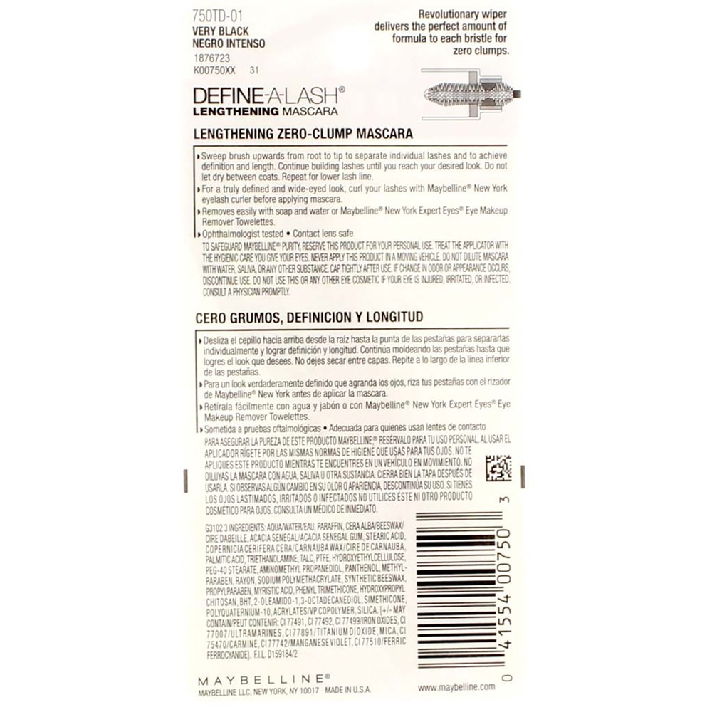 Product Description This zero clump mascara elongates and accentuates for stunning length with clean definition. Patented shaped to the lash flexible brush. Ophthalmologist tested, contact lens safe. Ingredients Water, paraffin, beeswax, acacia senegal gum, stearic acid, carnauba wax, palmitic acid, triethanolamine, talc, ptfe, hydroxyethylcellulose, pegg-40 stearate aminomethyl propanediol, pantehenol, methylparaben, rayon, sodium polymethacrylate, propylparaben, synthetic beeswax, phenyl trimethicone, simethicone, hydroxypropyl chitosan, bht, 2-oleamido-1.3-octadecanediol, polyquaternium-10, acrylates/vp copolymer. (+/- may contain: ci 77491, ci 77499, ci 77492/iron oxides, ci 77891/titanium dioxide, mica, ci 75470/carmine, ci 77288/chromium oxide greens, ci 77289/chromium hydroxide green, ci 77742/manganese violet, ci 77510/ferric ferrocyanide). Instructions Step 1. Apply mascara from your outer to inner lash. Step 2. Sweep brush slowly from root to tip. Step 3. Do not let mascara dry in between coats. Step 4. Easily remove mascara with Maybelline Expert Eyes 100% Oil-Free Eye Makeup Remover. Product Description This zero clump mascara elongates and accentuates for stunning length with clean definition. Patented shaped to the lash flexible brush. Ophthalmologist tested, contact lens safe. Ingredients Water, paraffin, beeswax, acacia senegal gum, stearic acid, carnauba wax, palmitic acid, triethanolamine, talc, ptfe, hydroxyethylcellulose, pegg-40 stearate aminomethyl propanediol, pantehenol, methylparaben, rayon, sodium polymethacrylate, propylparaben, synthetic beeswax, phenyl trimethicone, simethicone, hydroxypropyl chitosan, bht, 2-oleamido-1.3-octadecanediol, polyquaternium-10, acrylates/vp copolymer. (+/- may contain: ci 77491, ci 77499, ci 77492/iron oxides, ci 77891/titanium dioxide, mica, ci 75470/carmine, ci 77288/chromium oxide greens, ci 77289/chromium hydroxide green, ci 77742/manganese violet, ci 77510/ferric ferrocyanide). Instructions Step 1. Apply mascara from your outer to inner lash. Step 2. Sweep brush slowly from root to tip. Step 3. Do not let mascara dry in between coats. Step 4. Easily remove mascara with Maybelline Expert Eyes 100% Oil-Free Eye Makeup Remover. Warnings Safety Warning: To safeguard purity, reserve this product for your personal use. Treat the applicator with the hygienic care you give your eyes. Never apply this product in a moving vehicle. Do not dilute with water, saliva, or any other substance. Cap tightly after use. If a change in odor or appearance occurs, discontinue use. Do not use this or any other cosmetic if your eye is injured, irritated, or infected. Consult a physician promptly. Disclaimer The product descriptions and instructions provided by Vitabox are for informational purposes only and are qualified in their entirety by the information available from manufacturers of the products. You should carefully read all product packaging, and contact the manufacturer with any questions before using a product. While we endeavor to ensure that product descriptions are current, manufacturers sometimes change their products. We are not liable for inaccuracies or misstatements about products. We do not provide medical advice or recommendations. You should not use the information provided by Vitabox for diagnosing or treating a health problem or disease. If you have or suspect that you have a medical problem, immediately contact your health care provider. Information and statements regarding dietary supplements have not been evaluated by the Food and Drug Administration or any other government agency and are not intended to diagnose, treat, cure, or prevent any disease.