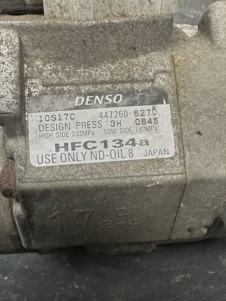 Manufacturer Part Number: 447260-6270 Material: Aluminum Type: A/C Compressor Brand: Mazda Compressor Drive Type: Belt Driven Manufacturer Warranty: 1 Year OE/OEM Part Number: 4472606270 Universal Fitment: No
