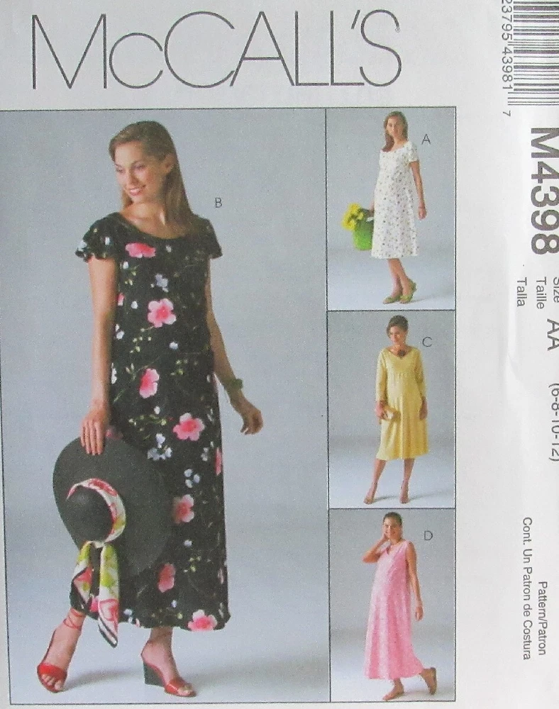McCalls 4398 EASY Womens 6-8-10-12 Maternity Empire Smock Dress Pattern UNCUT McCalls 4398 EASY Womens 6-8-10-12 Maternity Empire Smock Dress Pattern UNCUT McCall's Sewing Pattern 4398, dated 2004 Maternity Dress with Empire Bodice, neckline & sleeve variations & optional back ties Misses Sizes 6--8--10--12 included fits busts 30½--34" Pattern is UNCUT, factory folded, complete & unused condition Envelope is in great condition ~I mail All patterns in an archival quality storage sleeve. ~I ship SAME or NEXT business day . . . always! ~I don't use tracking for patterns. They are shipping USPS Flat 1st Envelope. ~I personally guarantee delivery within 10 business days or will process a full refund! Listing and template services provided by inkFrog