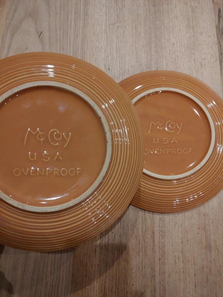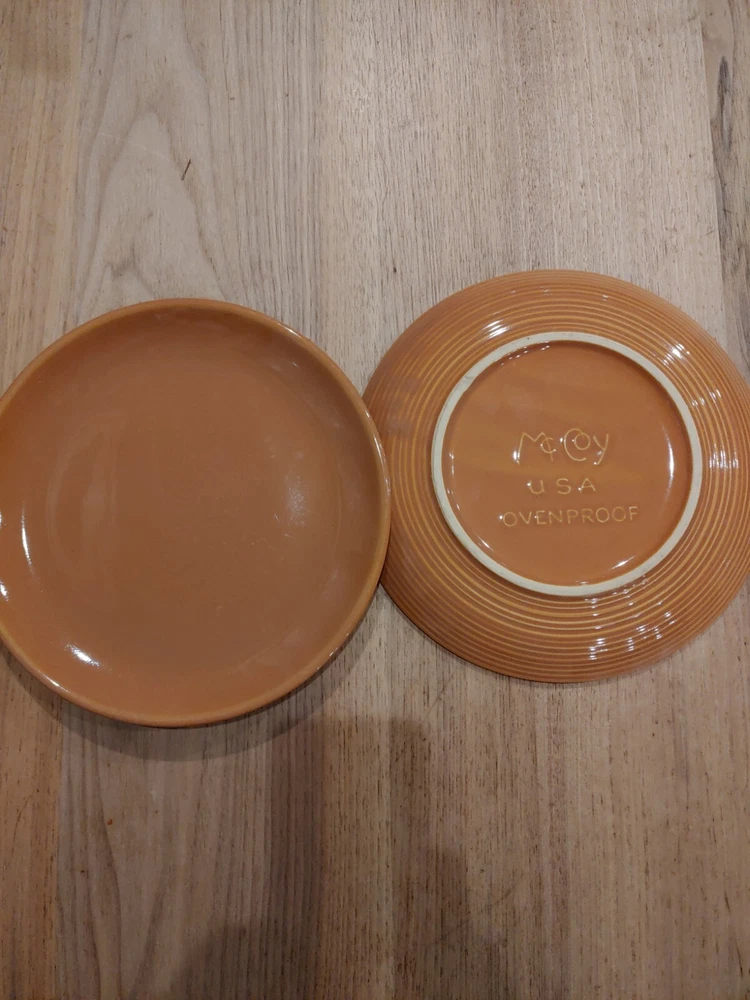 Backstamp:ImpressedColor:BrownItem Width:10.50 inCountry/Region of Manufacture:United StatesOriginal/Licensed Reproduction:OriginalTime Period Manufactured:1970-1979Set Includes:Dinner Plategtin13:Does not applyPattern:MesaMaterial:StonewareYear Manufactured:1970Type:Dinner PlateUPC:Does not applyMPN:Does not applyProduction Style:Art PotteryNumber of Items in Set:Two-PieceShape:RoundVintage:YesEra:Late 20th Century (1970-1999)Brand:McCoyOccasion:All OccasionsProduction Technique:Pottery