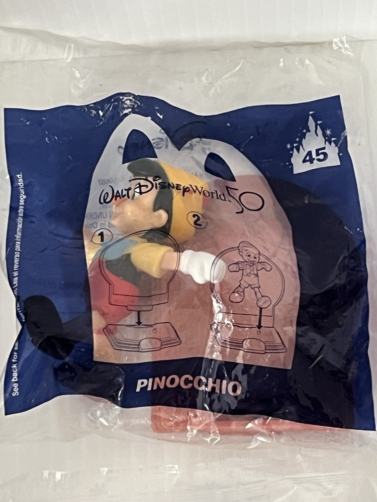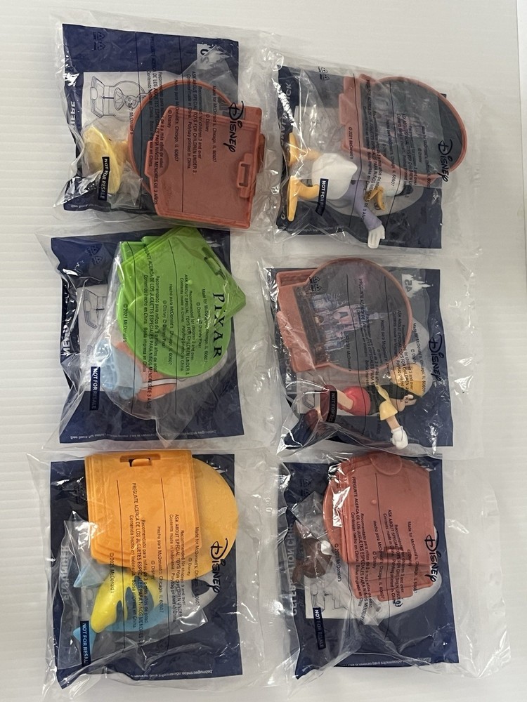 Lot of 6 assorted 2021 McDonald’s Happy Meal / Walt Disney World 50th Anniversary figures new in package Packaging has shelf wear #2 FLOUNDER #20 LUMIERE #44 Celebration DONALD DUCK #45 PINOCCHIO #48 Celebration CHIP #49 NEMO