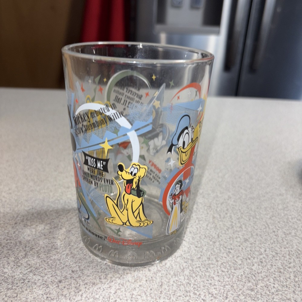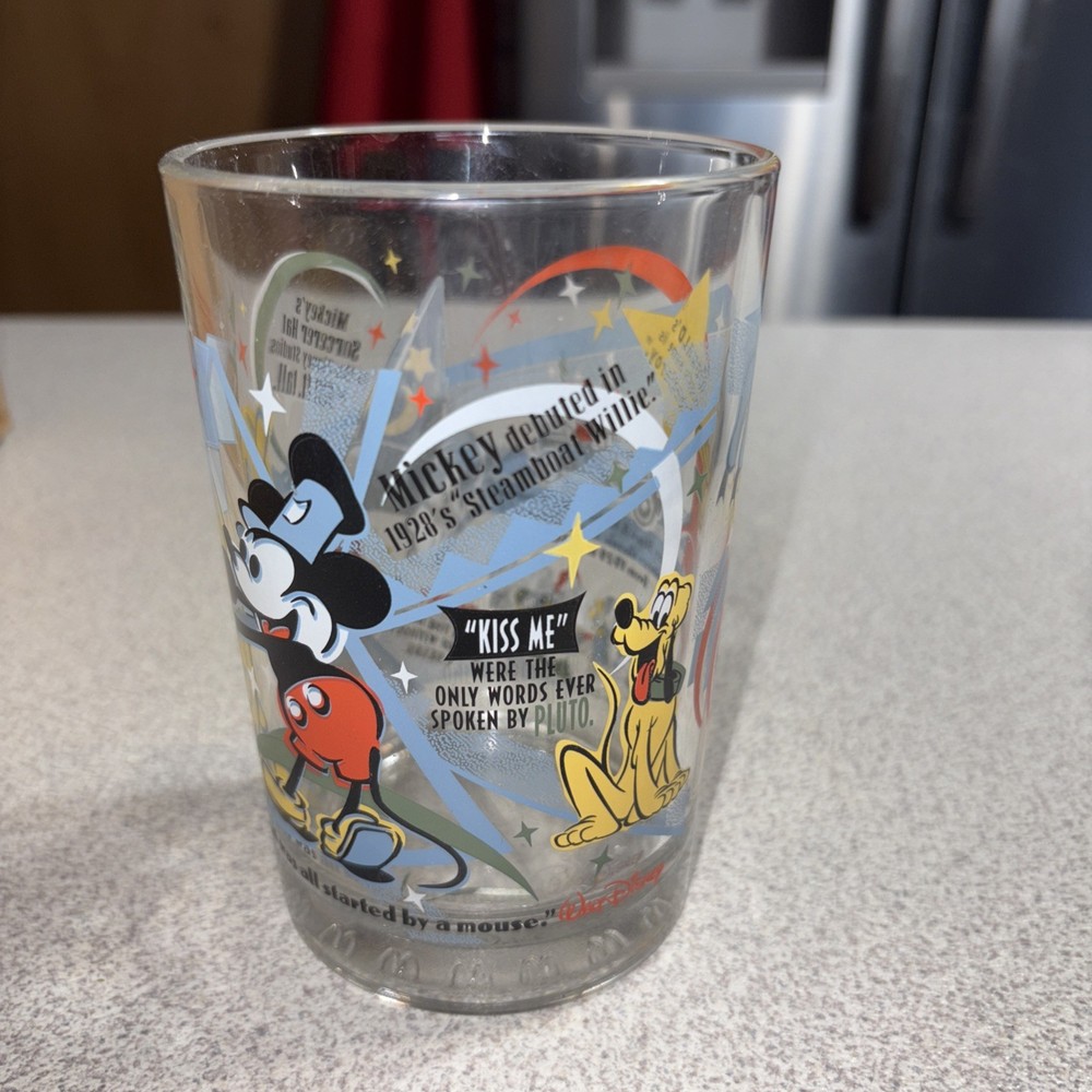 This product is a McDonald's Walt Disney World 100 Years of Magic glass cup featuring Mickey Mouse. Released in 2001 as part of a collectible set, this 16 oz cup celebrates the iconic character and theme of Disney's magic. With its contemporary design and official Disney franchise, this glass cup is a unique and nostalgic piece for fans and collectors alike. Good condition (see photos)