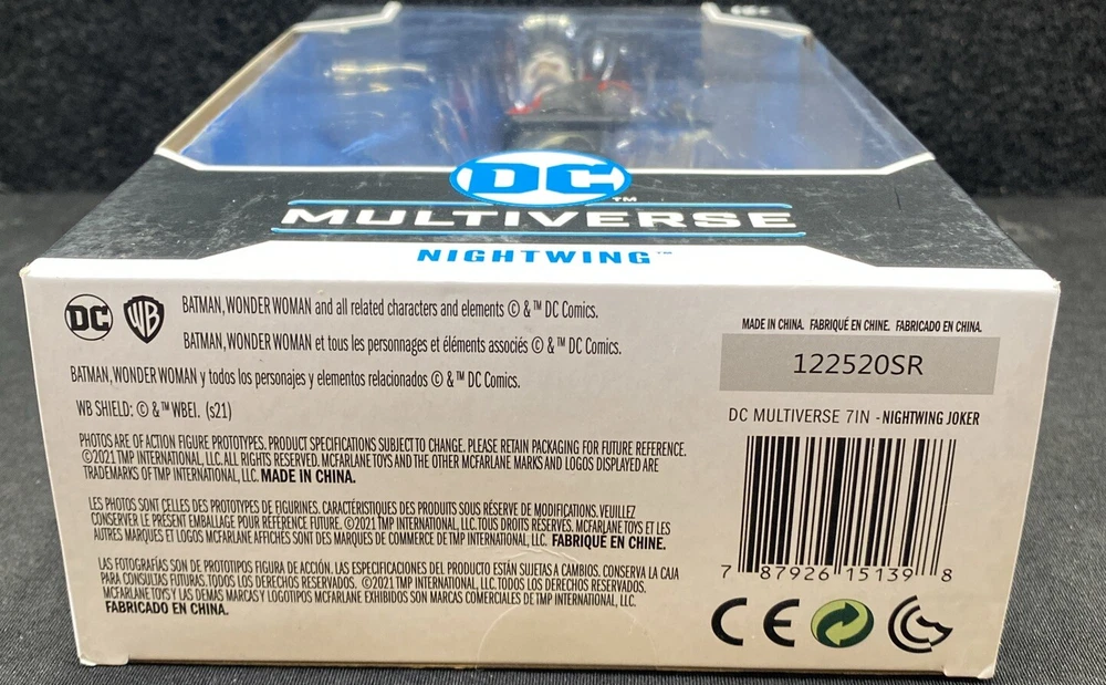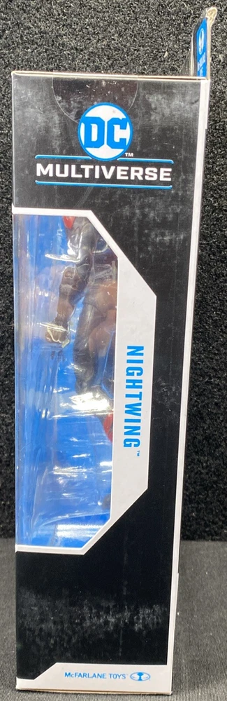 This McFarlane DC Multiverse Nightwing Joker Death Of The Family 7" Action Figure is a must-have for any fan of the Batman franchise. The figure features the Joker and Nightwing characters in a 1:12 scale, with adjustable joints and articulations for dynamic posing. The figure comes in its original packaging, unopened and with clothes included. The Nightwing Joker model is part of the DC Multiverse series, with aspects such as Animation Studio, Movie, Character, Color, Material, Scale, Year Manufactured, Age Level, Franchise, TV Show, Vintage, Brand, Series, Type, Original/Licensed Reproduction, Item Height, Model, Packaging, and Theme. This collectible is perfect for those who appreciate detail and quality in their action figures.