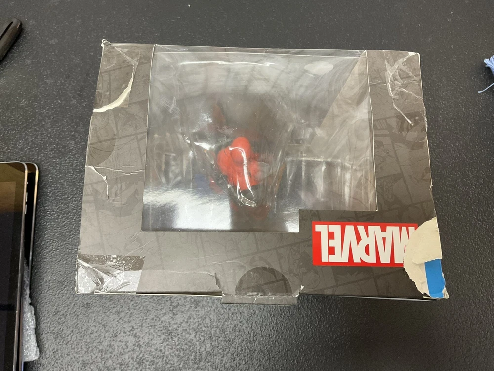 This McFarlane Toys Deadpool The New Mutants Issue #98 Posed Figure-Box Damage-Lot 86 is a must-have for any fan of the Marvel Universe. The 1:10 scale figure is made of durable plastic and stands at 7 inches tall. It features the iconic red and black suit and is an original licensed reproduction. This posed figure is perfect for collectors and fans alike, with its boxed packaging and authentic details. The figure is not only a great addition to any collection but also a perfect gift for any Marvel enthusiast. Bring home the excitement of the Deadpool character with this amazing McFarlane Toys figure.