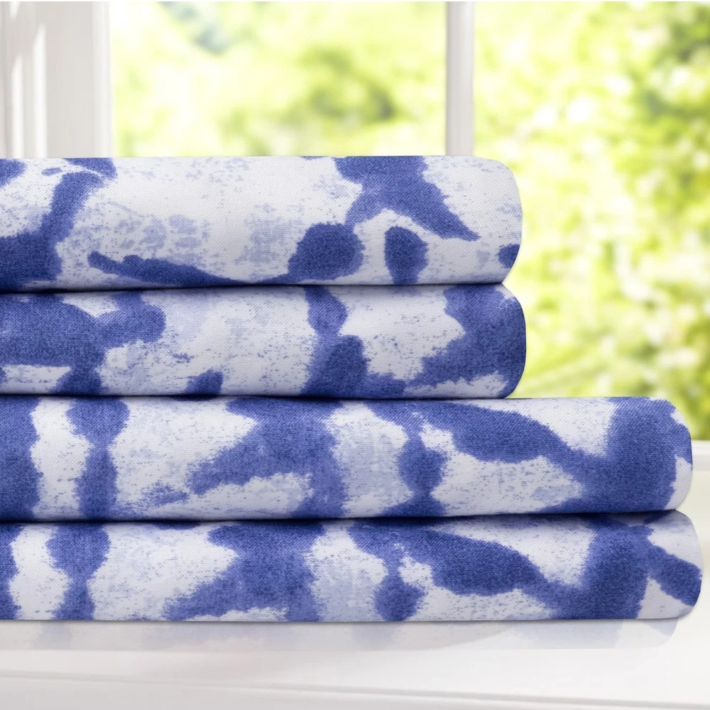 The McKenzie Sheet Set embraces the chaos and messiness of life with a smile. Smooth strokes of watercolor paint and blotted ink are artfully printed on the smooth microfiber fabric for a realistic look. The busy design maintains its cool composure with the monochromatic balance of faded navy on an ultra-light blue background. With an up-close view, you can see that the intricate pattern is actually a simple mix of classic doodle lines that may have filled the edges of your school notebook. Chevron lines, linked diamonds, X grids, and gemstone shapes link together in a messy, yet perfectly poised patchwork. Machine washable.Twin Set includes 1 fitted sheet, 1 flat sheet and 1 pillowcase, Full, Queen, King and Cal King Sets include 1 fitted sheet, 1 flat sheet and 2 pillowcases.Sheet Free Shipping Over $49.99* Details McKenzie 4-Piece Patterned Deep Pocket Sheet Set Product Description: The McKenzie Sheet Set embraces the chaos and messiness of life with a smile. Smooth strokes of watercolor paint and blotted ink are artfully printed on the smooth microfiber fabric for a realistic look. The busy design maintains its cool composure with the monochromatic balance of faded navy on an ultra-light blue background. With an up-close view, you can see that the intricate pattern is actually a simple mix of classic doodle lines that may have filled the edges of your school notebook. Chevron lines, linked diamonds, X grids, and gemstone shapes link together in a messy, yet perfectly poised patchwork. Machine washable.Twin Set includes 1 fitted sheet, 1 flat sheet and 1 pillowcase, Full, Queen, King and Cal King Sets include 1 fitted sheet, 1 flat sheet and 2 pillowcases. Sheet set Patterned Microfiber Twin Size Only Has 1 Pillowcase Machine washable 14 inch deep pocket Coordinate with other items from the McKenzie collection Dimensions Twin(1)fitted 75"Lx39"W (1)flat 96"Lx66"W (1)pillowcase 20"Lx30"W Full(1)fitted 75"Lx54"W (1)flat 96"Lx81"W (2)pillowcases 20"Lx30"W Queen(1)fitted 80"x60" (1)flat 102"x90" (2)pillowcases 20"x30" King(1)fitted 80"x78" (1)flat 105"x102" (2)pillowcases 20"x40" Cal King(1)fitted 84"x72" (1)flat 102"x108" (2)pillowcases 20"x40"