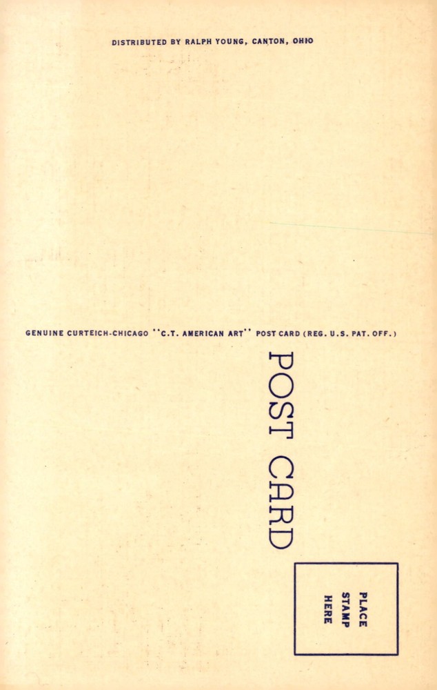 This postcard features the McKinley Memorial in Canton, Ohio. Distributed by Ralph Young, it is a genuine Curteich-Chicago C.T. American Art postcard.