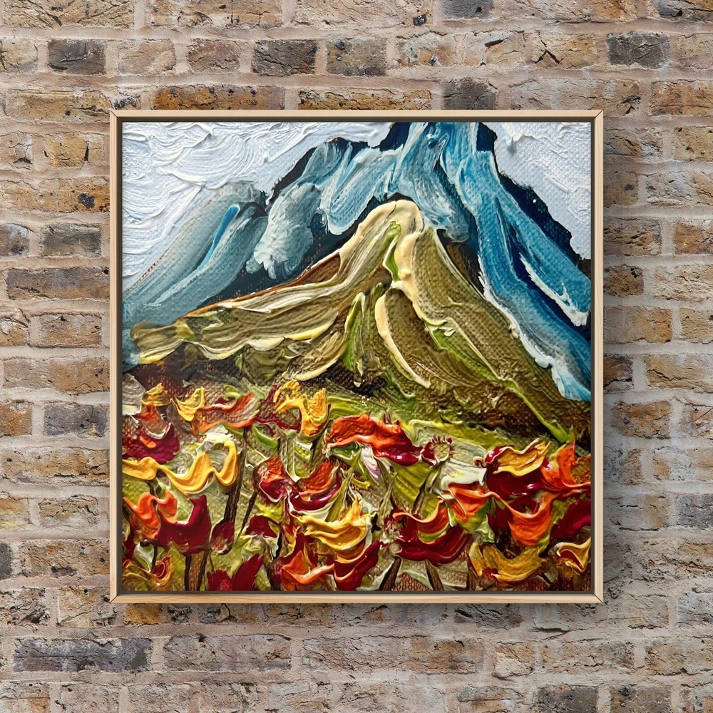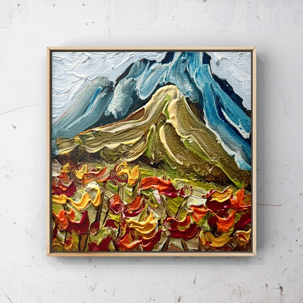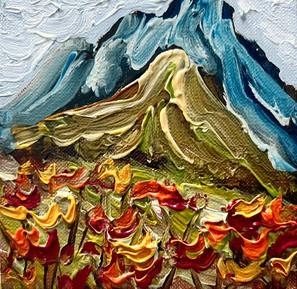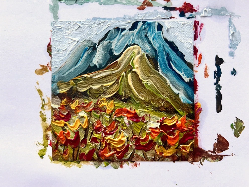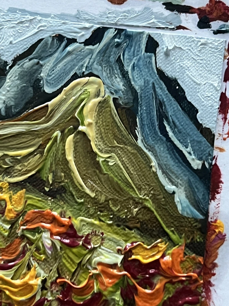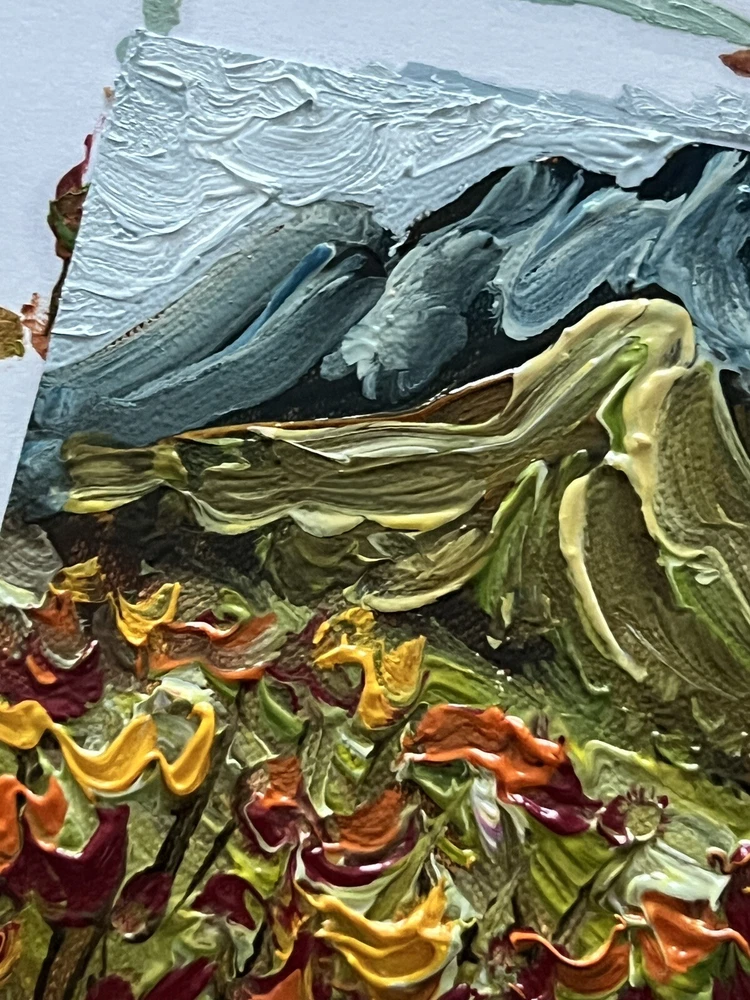Meadow Valley Oil Painting Miniature Canvas Mountains Wildflowers Landscape Art