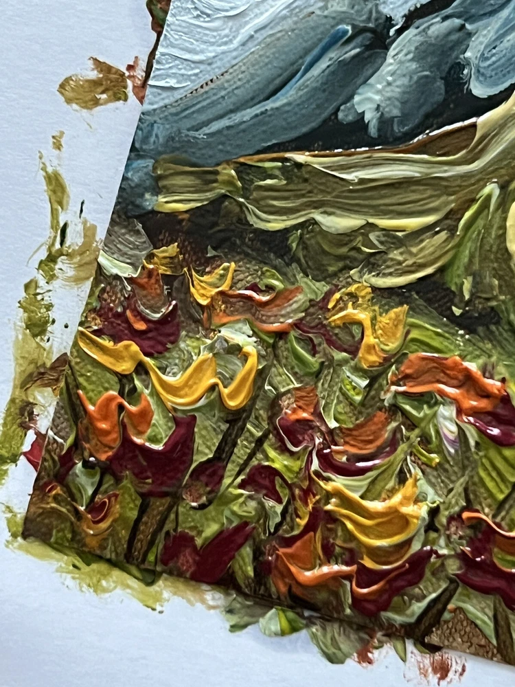 Theme: Art Personalize: No Item Height: 4 in Artist: Kateryna Oliynyk Type: Painting Date of Creation: 2000-Now Listed By: Artist Item Length: 4 in Features: Miniature, One of a Kind (OOAK) Width (Inches): 4 Unit of Sale: Single-Piece Work Title: Abstract Landscape Oil Painting Style: Abstract, Impressionism, Miniature, Modernism, Outsider Art, Impressionist Signed By: Artist Framing: Unframed Year of Production: 2023 Signed: Yes Material: Cardboard, Paper, Oil Production Technique: Oil Painting Height (Inches): 4 Subject: Flowers, Landscape, Plants, Floral, Nature, Mountain Handmade: Yes Time Period Produced: 2020-Now Region of Origin: Ukraine Original/Licensed Reproduction: Original Size: Small Country/Region of Manufacture: Ukraine