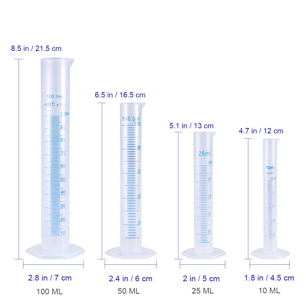 Related Hot Sale Flexible Air Pipe Chimney Caps Adjustable Hose Outdoor Camping Cooking Stove US $14.88 2Pcs Women Cardigan Clip Cardigan Clasps Scarf Brooch Clips Retro Sweater Clips US $11.18 Gas Stove Rack Gas Hob Rack Gas Range Burner Covers Gas Oven Stand US $14.68 Hard Saxophone Case Soprano Saxophone Case Saxophone Carry Case Sax Cases US $26.48 6 Pairs Shiny Titanium Earrings Studs Women Screw Back Earrings Women US $14.99 2 Pair Foam Shoe Toe Filler for Amputated Toes Unisex Inserts Sponge Cushion US US $8.69 | Baby | | Books & Magazines | | Business & Industrial | | Cameras & Photo | | Clothing, Shoes & Accessories | | Collectibles | | Computers/Tablets & Networking | | Crafts | | Home & Garden | | Jewelry & Watches | | Cell Phones & Accessories | | Consumer Electronics | | Sporting Goods | | Toys & Hobbies | | Video Games & Consoles | | Health & Beauty | Product Description Collecting listings has surprises Description The non-wetting inner surface concave meniscuses are eliminated, providing accurate measurements. The item is a pack of 4pcs graduated measuring cylinders including one 10ml, one 25ml, one 50ml and one 100ml, which is mainly made of durable food-grade hard plastic material for safe to use, and features wide brim and a tapered pour spout for easy filling and pouring. Features - Color: transparent. - Material: food-grade polypropylene plastic. - and Transparent Plastic Graduated Measuring Cylinder. - The wide pentagonal shaped base provides stability and makes the cylinder roll-resistant. - Brand: UEETEK. - Chemically resistant to most acids, bases and many common solvents. - The heavy-duty plastic withstands repeated autoclaving. - Switching from glass cylinders to Globe's plastic equivalents will greatly reduce breakage and the potential for injury. - Wide rim and a tapered pour spout for easy filling and pouring. - The non-wetting interior surface eliminates concave menisci, providing more accurate measurements. - Plastic graduated cylinder for laboratory test. Package includes 4 * UEETEK Transparent Measuring Graduated Cylinders Contact US 1.If you have some inquires or problems, Please feel free to contact us. 2.We will reply your email within 1 business day (except weekend). 3.When delivery is delayed or items are damaged during delivery, please email us first before you leave feedback. Thank you. On Nov 1, 2024 at 08:45:17 PDT, seller added the following information: People Who Viewed This Item Also Viewed Measuring Experiment Precise Flask Home Use Laboratory School Education US $13.79 American Flag Swimsuit Women Bikini Set Bikini Two Piece Set US $12.28 Cow Feeder Pig Feeding Trough Cattle Feeder Piggy Food Feeder US $24.95 Cymbal Stacker Percussion Cymbal Holder Cymbal Bracket Cymbal Extension Arm US $10.20 Kerosene Stove Heater Burning Tent Outdoor Barbecue Heating Camping Accessory US $23.77 2 Pcs Simulation Ant Model Ant Toy Realistic Prank Bugs Toys Scary Prank Ants US $10.04 Exercise Bike Pull Pin Knob Replacement Part Height Screw Equipment Accessory US $10.14 1 Roll Peel and Stick Molding Floor Baseboard Trim Self Adhesive Baseboard US $16.87 Concrete Trowel Finishing Tool Concrete Finishing Tool Professional Plastering US $10.99 Floor Transition Strip Carpet To Floor Strip Carpet Edging Trim Self Adhesive US $19.91 12 Pcs Clear Iridescent Fillable Ornaments Christmas Pearl Bubble Ball Office US $9.20 Trampoline Tent Cover for Camping Pe Rainbow Parachute Parachute Play for Babies US $12.30 100Pc Integrated Wall Panel Clamp Hemoton Wpc Installation Clips Buckle Clamp US US $12.96 2Pcs Brine Shrimp Hatchery Kit DIY Reactor Carbon Dioxide Bottle Cap US $9.01 Oval Galvanized Pails Metal Bucket Planter Seafood Buffet Serving Plate US $15.18 4Pcs Desktop Trash Can Tiny Trash Can Cool Ashtrays Recycle Bin US $9.64 Round Grill Net Stainless Steel Barbecue Mesh Outdoor Grill Mesh BBQ Grilling US $11.65 Key Box Security Cabinet Car Case Holder Wall Mounted Clothes Rack Hanger Lock US $28.19 Headbands Donkey Costume Accessories Hairpin Set Woman Donkey Ear Headband US US $7.98 2Pcs File Magazine Holder Compartments Box Desk Folder Rack Storage Organizer US US $12.49 2 PCS Tool Box Handle Replacement Chest Handles Vintage Foldable Tool Box Handle US $12.49 12 Pcs Reflective Tape Tachometer Reflective Strip Speedometer US $9.74 Pipe Deburring Reamer Aluminum Pipes Chamfer Tool Tube Deburring Reamer US $14.09 Laboratory Scissor Jack Aluminum Alloy Laboratory Lift Jack Stand Platforms US US $22.36