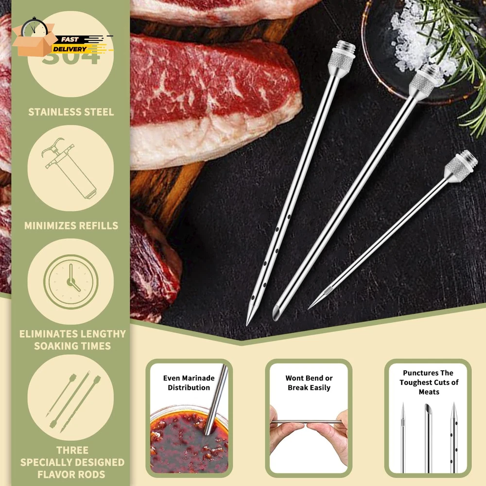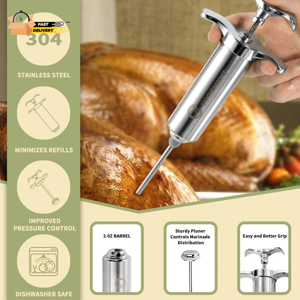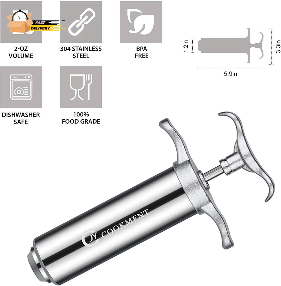 Store New Arrivals Add to Favorite View Feedback Contact Meat Injector Syringe - Flavor Injector with 3 Stainless Steel Prof Description Item model number JY-27 Product Dimensions 11.8"D x 3.5"W x 1.5"H Color Sliver Form Factor long and thin Item Weight 0.66 Pounds Outer Material Stainless Steel Is Discontinued By Manufacturer No Inner Material stainless steel Size 2OZ 3 Neddles with Color box [HIGH QUALITY MATERIAL MADE]: JY COOKMENT meat injector kit is made of 304 food-grade heavy-duty stainless steel. Durable and sharp, the needles puncture any meat or poultry with ease, ensuring you can enrich the taste of tough or thick cuts. [EASY DISASSEMBLE AND CONVINIENT CLEANING] Our meat injector is designed for quick and easy disassemble. With 3 cleaning brushes makes clean up super easy, Dishwasher-SAFE [JUICY & YUMMY for Every Bite] Our perfectly crafted seasoning injector make every bite of the meat is flavorful and juicy. For this flavor injector also intensify flavors of Thanksgiving / Christmas turkey, beef brisk, pork and BBQ roaster. [PACKAGE CONTENTS] JY COOKMENT meat injector with 1x 2-OZ capacity flavor injector barrel, 3x professional marinade needles, 4x spare syringe silicone O-rings, 3x cleaning brushes, 1x instruction and 1x E-book, [PERFECT GIFT CHOICE AND SATISFIED SERVICE] JY COOKMENT meat injector with elegant package. Really nice to be a gift for Father’s day, Christmas Day, Thanks Giving, and BBQ season. Friendly customer service, and A 100% Unconditional After-Sale Return Policy, in case of you don’t like it. Product Description Marinade Injector Kit Your Kitchen Asistant JY COOKMENT kitchen Utensils will do you a favor to be a professional chef in your kitchen. Specialized in high-quality Kitchen Utensils & Gadgets.Your satisfied is our Goal! JY COOKMENT INJECTOR Makes Your Meat Flavor in Minutes Enjoy your every meal! Have you ever let your favorite meat or poultry soak for hours only to find that centre is chewy and bland like a piece of cardboard? Everyone who enjoys home cooking and grilling meet this problem is not a pleasant experience. Our meat injector ensures you never have to settle for dry or bland food. Also no need wait hours for little more than surface flavoring. With a practical and functional design,this Injector penetrates deep to deliver optimum flavor infusion through out. A high-grade stainless steel meat marinade injector that won't easily clog, bend, or break 3 different Sharp needles with different lengths to meet different needs without extra money Non-toxic, Food contact safe material, safe to use One 2-ounce barrel for fewer refills An ergonomic handle for greater grip and pressure control Dishwasher safe Why choose JY COOKMENT meat injector? Food Contact Safe Material JY COOKMENT seasoning injector is crafted with perfection to ensure the dripping taste in every part of the food. Now flavor up your Thanksgiving / Christmas turkey, beef brisk, pork and BBQ roaster.This meat injector are made from 304 stainless steel. BPA-free silicone seal rings. Feel free to use it. 3 Different-Function Needles 1 x 5.8 Inch Angle Cut Needle for Chunky Marinades 1 x 5.8 Inch 12-Hole Needle for Liquid Only Marinades 1 x 4.3 Inch Steak Needle for Injecting thin cuts of meat or chicken marinade Package Include 1.1*2 OZ Meat Injector barrel & 3*meat needles (2*5.8"/1*4.3") 2.2*Cleaning needle Brushes (one big, one small) 3.2*Large Spare O-Ring (Bonus) & 3*Small Spare O-Ring (Bonus) 4.1*Use peper instruction & 1* free E-book Strengthen handle design JY COOKMENT meat injector with Strengthen handle design, It will make you inject the juice more comfortable and easy use. Juicy, Tender & Yummy for Every Bite! JY COOKMENT meat injector make the marinade into the turky ,chicken, beef and meat directly. No need wait hours for little more than surface flavoring. More Details: Ti ps: 1. To utilize this Seasoning Injector better, Please clean the meat syringe before use. 2. If it is difficult for you to press, please add it some oil to make it easier to use. After a certain time, the situation will be improved. 3. KEEP OUT OF THE REACH OF CHILDREN! Because the marinade needles are pretty sharp! 4. Seasoning herbs should be grounded up to be quite smaller than needle holes. ABOUT US We offer the best prices around on high quality products. Our E-store includes media such as books, movies, music and games while offering electronics, toys, sporting apparel, clothing, tools, general home, garden items and more. SHIPPING We are always working hard to ensure your package arrives as soon as possible. Please understand that some factors like weather, high postal traffic, and the performance of shipping companies are outside of our control. We offer free shipping to the lower 48 states and ship within 2 business days of payment, usually sooner. We do not accept P.O. Boxes. Please provide a physical address. For shipping outside of the continental USA, we only use eBay's Global Shipping Program.The item is shipped to KY and then sent to the rest of the world. International customers are responsible for all duties and taxes. Continue to check out in order to calculate costs for shipping the item to your country. Messages regarding eBay's Global Shipping Program MUST be directed at eBay EXCLUSIVELY. RETURNS We offer a 30-Day Return Policy on items which you are not completely satisfied with. You have the option for a full-refund or an exchange of the item. No returns are available on items shipped outside of the USA. PAYMENT We accept PayPal. CONTACT US This page content is yet to come Please ad us to your favorite seller and visit again later Thank You CUSTOMER SATISFACTION We try our very best to make sure every customer is completely satisfied. If there's a problem, message us! We're happy to help. WE ACCEPT Copyright © 2021 AutoDS. | All Rights Reserved