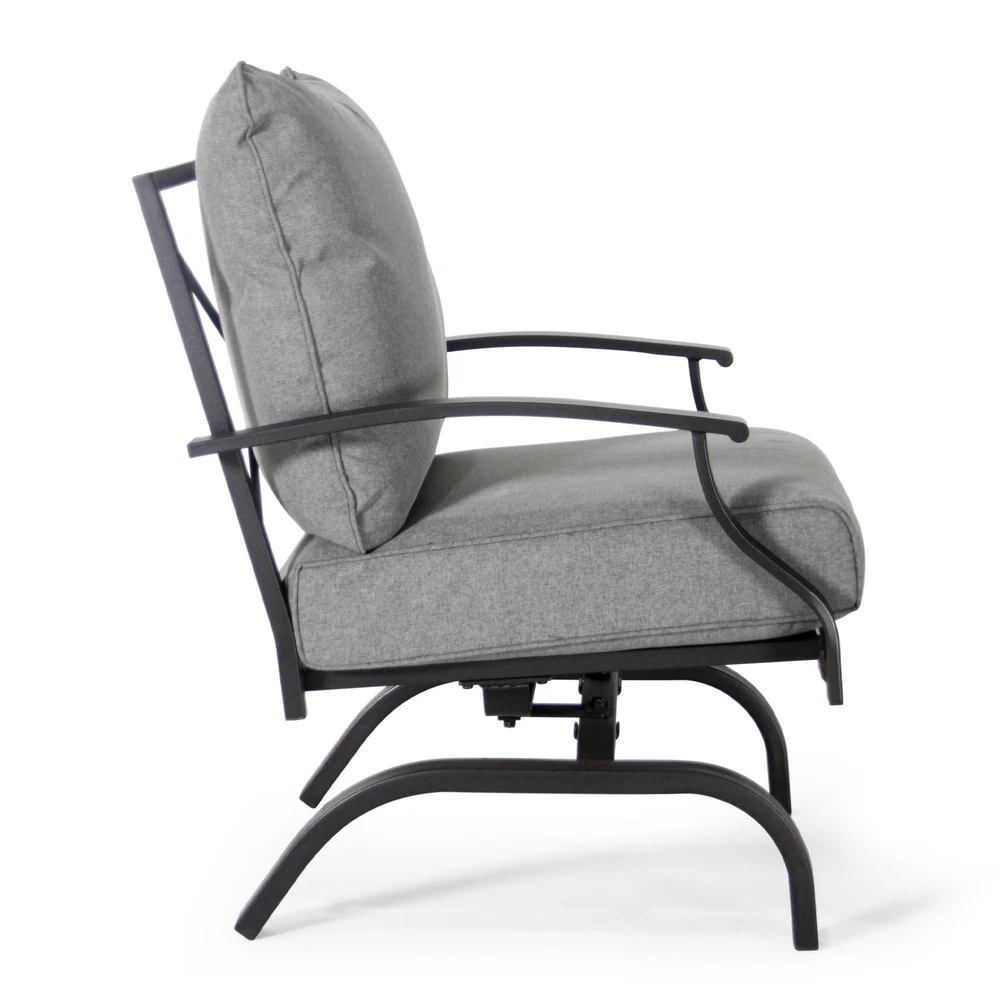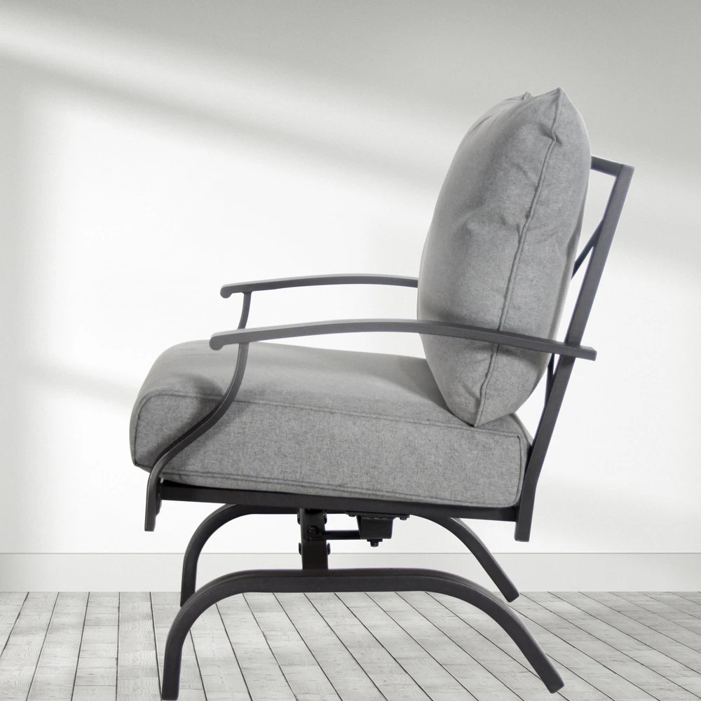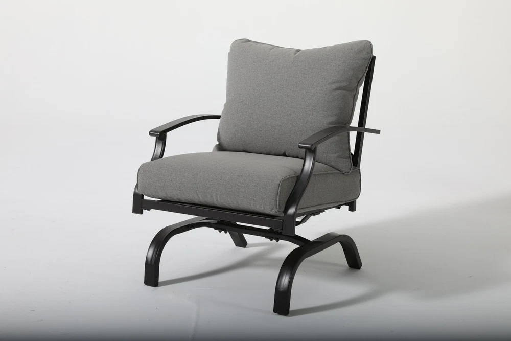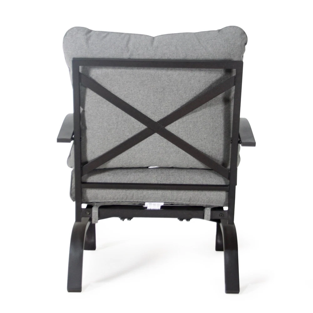Specifications Place of Origin China Main Color Grey Main Material Steel Use Case Garden & Outdoor Outdoor Seating Type Multiple Chairs Seating Group Set Design Rocker & Glider Cushions Included Yes Frame Durability Weather Resistant Frame Cushion Durability Fade Resistant Cushion Dangerous Goods #dangerFlag# Dimensions & Weights Assembled Length (in.) 31.50 Assembled Width (in.) 26.50 Assembled Height (in.) 32.54 Weight (lbs) 32.00 Product Features The set includes 4 rocking-motion chairs with seat and back cushions Durable powder-coated steel frames Water- and UV-resistant Olefin upholstery Tufted back cushion for a better décor Foam-filled cushions of UV-resistant Olefin fabric cover Weight Capacity of each Chair: 250 lb. Seat Cushion Thickness up to 4' Description