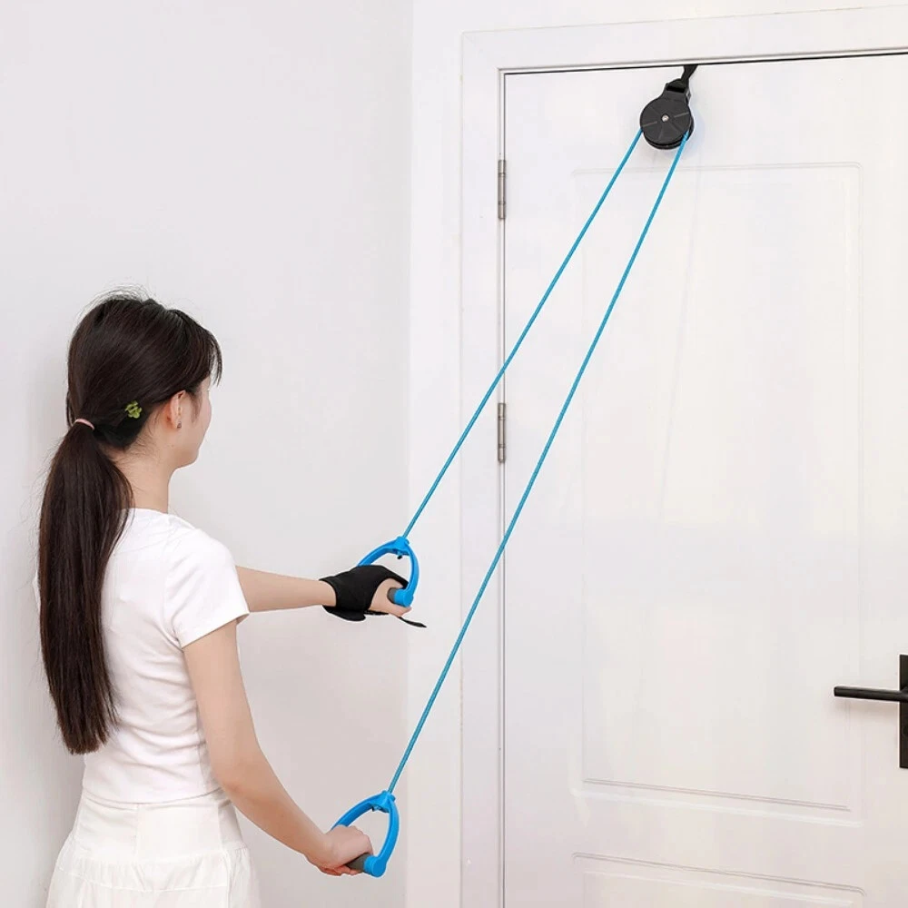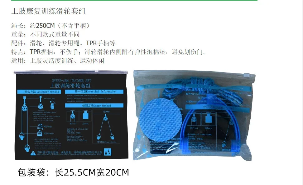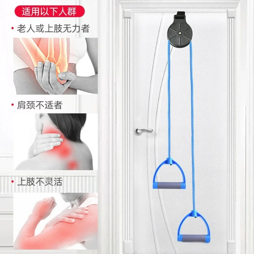 Medical Shoulder Joint Exercise Brace Support Pulley Ring Elderly Stroke Hemiplegia Upper Limb Rehabilitation Train Sports Ropes Recommended users: (1) upper limb rehabilitation training (2) upper body flexibility training (3) Rehabilitation training for the elderly (4) home exercise routine HOW TO USE -Step 1: Place the pulley on the side of the elastic foam pad facing the door -Step 2: Thread the webbing with the foam buckle through the top of the door -Step 3: Close the door and fix it for use Product Included: Handle*2, Rope*1, Buckle*1, Ring*1
