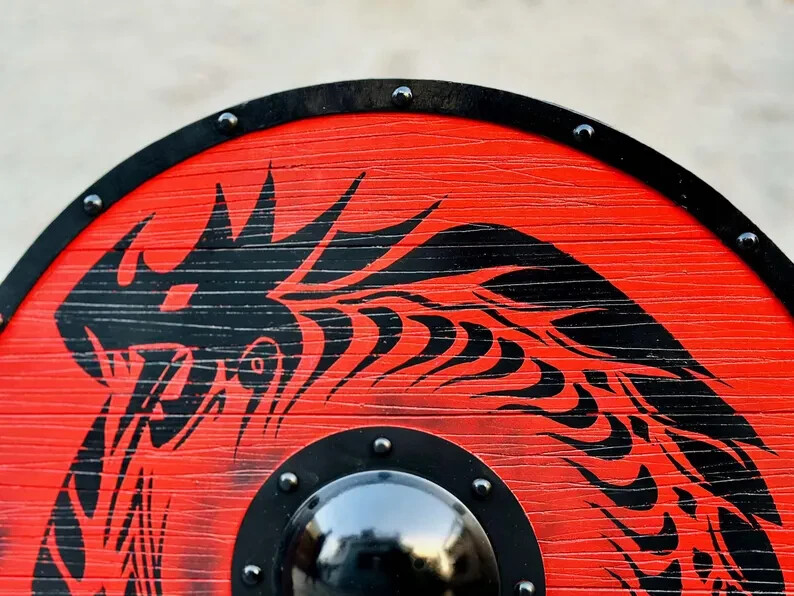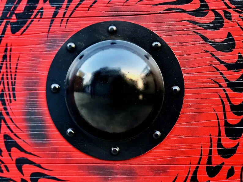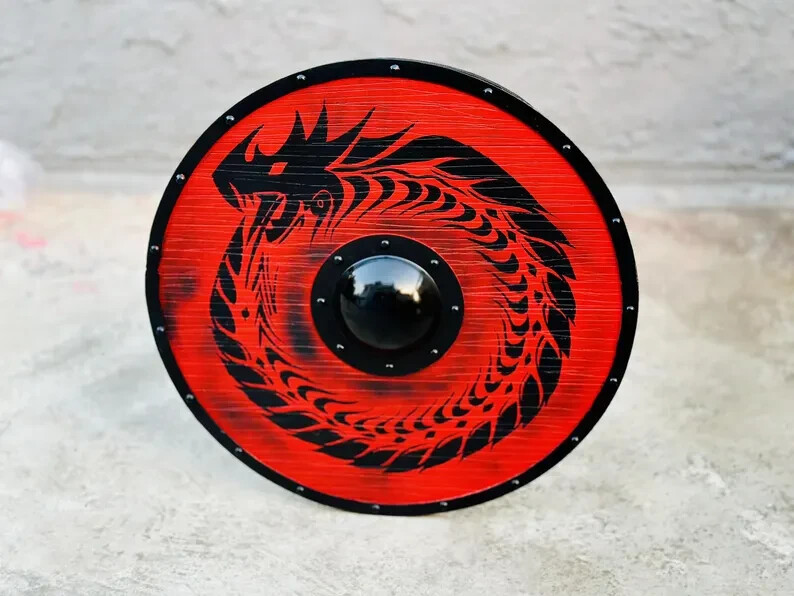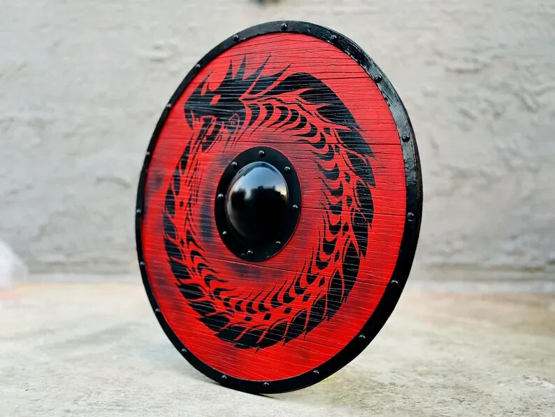 Production Description: Viking Cosplay Wooden Shield, Medieval Costume Viking Shield Battle Ready Viking Shield Ragnar Viking Shield Round Shield For Viking Gift Shield best For Gift. Well Made Premium Quality Wooden Viking Shields - Materials : Hard Wood, Metal And Paint - Size: 24 inch - Shape : Round ❄ Use: Ideal for cosplay, LARP, historical reenactments, or as a stunning display piece. Everyday Usable, Unisex Usable, Best for Gift. Thanks for Shopping