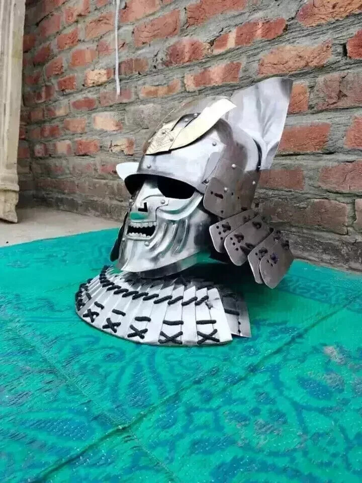 Medieval Samurai Helmet Japanese Larp reenactment Armor Helmet Products Details: Helmet is Made from 16 GA steel Finish : As shown in picture Circumference: 26 inch Diameter Ear to Ear: Side to Side: 8 inches approx. Diameter: Front to Back: 9 inches approx. stand is not included