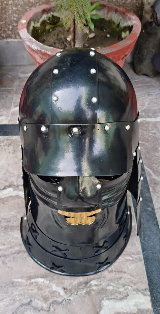 Product Details : Medieval Samurai Armor Helmet | Knight Steel Helmet | Samurai Face Helmet Garage 18 M Steel Helmet Height from top to bottom : 15.5 inches (approx.) Inside diameter from front to back : 9.5 inches (approx.) Inner diameter ear to ear : 9 inches (approx.) Circumference : 26 Inches (Approx.) This is a Tottaly Handmade item. Not sold as an Antique. ABOUT US : UniqueArmory Is One Of The Big Collectors Of Medieval Replica's Products From India. Alternatively We Are One Of The Leading Manufacturer, Supplier And Exporter Of A Comprehensive Range Of Medieval, Nautical Decorative And Much More Gifts Items. These Are Available In Various Designs That Cater To The Different Requirements Of Our Clients. Our Goal Is To Be The Irreplaceable Leader In The Supplying Of Medieval Products. We Believe That Client Satisfaction Is The Basic factor Which Determines The Success Of Any Business. Therefore, In Order To Satisfy Our Clients, We Provide The Highest Quality Products Along With Excellent Customization Facilities. NOTE: Colors May Slightly Vary Or May Not, From What You See On Your Monitor With The Actual Piece. This May Be Because Of Monitor Resolution Or Picture Tube Variances. The Image Shown Is Shot From The Master Piece And We Always Ensure We Send You The Exact Shown Colored Product With The Same Workmanship And Prints. Products With Dyeing Work May Have Slight Color Variations Because Of Manual Dyeing Process RETURN POLICY : If There Is Any Problem With The Item Or Delivery, Please Contact US Before Leaving The Feedback. We Will Make Sure That The Issue Is Sorted Out Refund Is Payable After receiving product has to be returned in Good salable condition. Return Will Be Accepted Within 14 Days Only. In Case Of Return Buyer Will Pay The Return Charges. PACKING : We Understand That You Want Your Product To Reach You In Its Best Condition, Thus The Products Would Be Packed Properly In A Tamper Proof Packing Material That Protects The Product From Being Damaged Or Soiled Or Any Other Damages. FEEDBACK : In Case You Are Not Satisfied, Please Contact US Immediately. We Will Do Everything Possible To Please You And Bring A Smile On Your Pretty Face. Looking Forward For Your Positive Feedback. We Believe That All Disputes Can Be Settled By Proper Communication. So Please Communicate For Faster Resolution. Please Visit Our Store & Check More Beautiful Items. Please mention your contact number at the time of order for easy shipping & delivery. CONTACT US : IF YOU HAVE ANY QUERY PLEASE FELL FREE TO CONTACT US THROUGH Ebay MESSAGE SYSTEM THANK YOU ! Best Regards Have a Nice Day! Thanks For Visit..