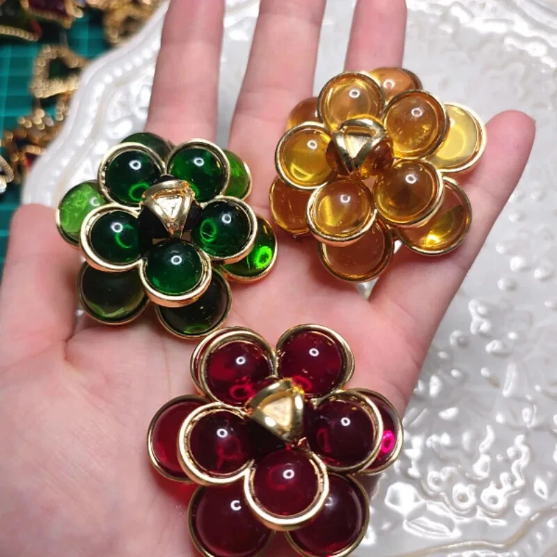 Medieval Vintage Large Size Glazed Flowers Brooch Banquet Wedding Accessories
