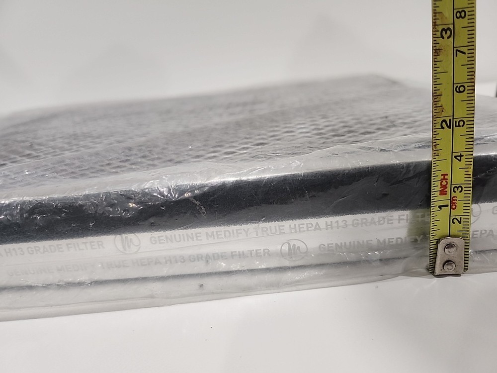 Open box, slight damage to 1 corner from storage. See last picture. The Medify Air Genuine True Hepa-Grade Replacement Filter H13 is designed to provide high-quality filtration for your indoor air quality needs. This white air filter is compatible with Medify Air purifiers and utilizes HEPA-Type filtration technology to capture a wide range of airborne particles. With a single filter in the pack, you can easily replace your old filter and enjoy cleaner, healthier air in your home. Keep your living space fresh and clean with this reliable Medify Air filter.