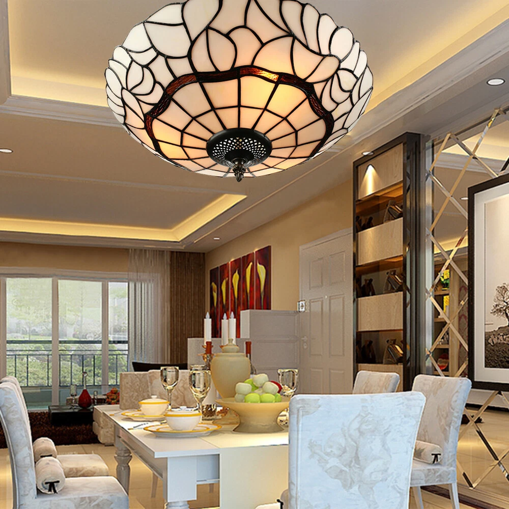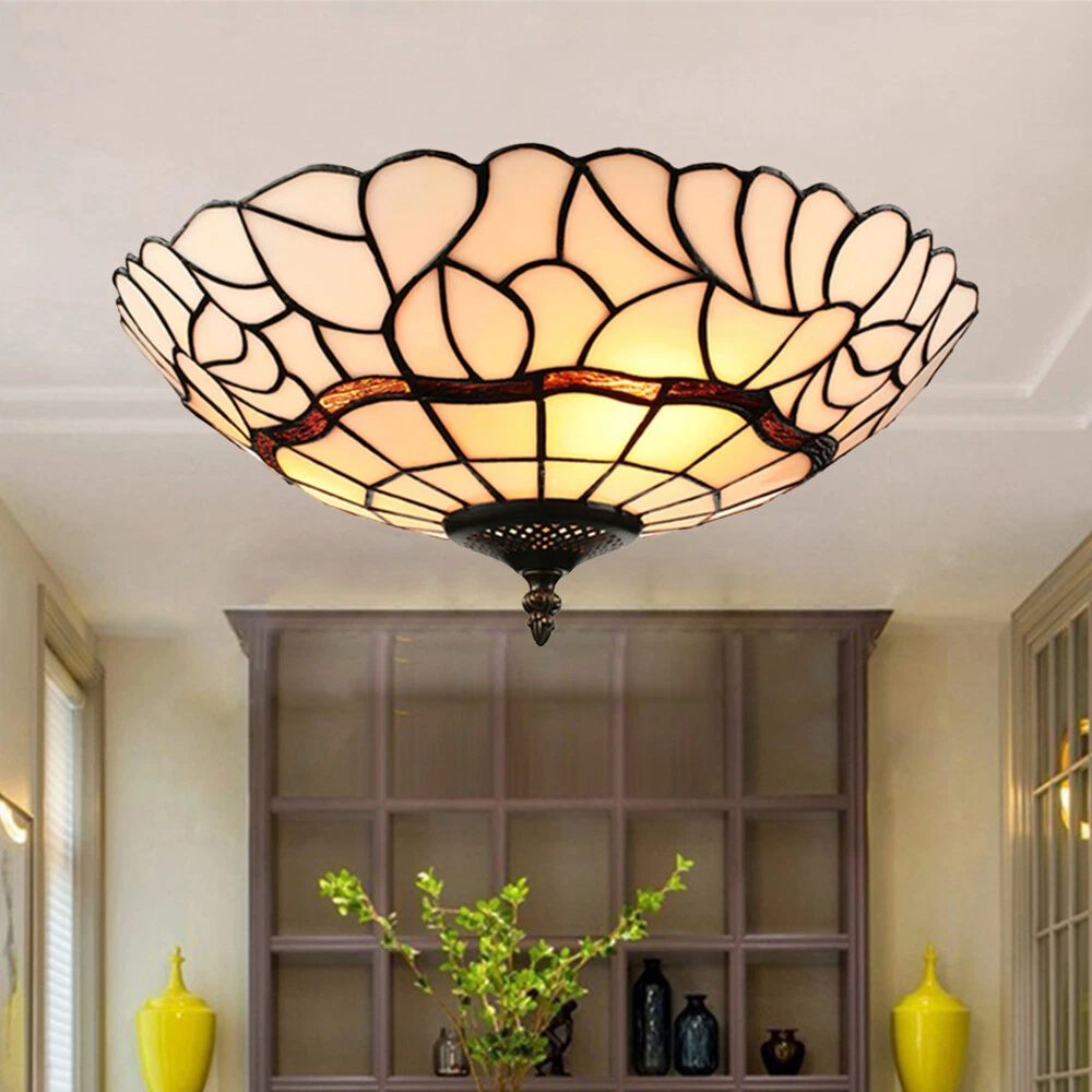 Height: 7" (18 cm) Width: 16" (40 cm) Bulb not included Tiffany light will have different color with different light bulbs Tiffany light will have different color with different light bulbs Specifications Light Information Category:Flush Mounts Lighting Theme:Floral Shape:Bowl Lighting Styles:Contemporary Setting:Living Room Lighting Materials:Art Glass Dimensions Height:7" (18 cm) Width:16" (40 cm) Size:Small (13-22 in. wide ) Bulb Information Bulb Base:E26/E27 Number Of Lights:3 Bulb Included Or Not: Bulb not included Color Colors:White Others Switch Types:Hardwired Lighting Types:LED Lighting Shipping Weight:3.5KG Processing Time 7-10 Business Days (Exclude Customized Products) Payment Delivery details Contact us Return Policy Terms of sales Payment All major credit cards are accepted through secure payment processor eBay Payment Delivery details We will ship the item out in 1 business day after the payment is cleared. If you DON'T receive your item in 30 days. Please contact us immediately for further assistance. Thank you for your understanding. Note: Import duties ,taxes or any charge of your country are NOT included in the item price or shipping charge. Contact us If there is any question, please don't hesitate to contact us. Please send us the message. All message will be answered within 1 business day. If you don't receive our reply, please check the spam in your mail box. We greatly appreciate your POSITIVE feedback. Please DO NOT leave negative or neutral without asking for help. Please DO NOT leave negative or neutral feedback if you have not received item in 30 days, please contact us first,we will solve the issues. Return Policy 100 % money-back Guaranteed! We promise 30 Days Return of Ebay; All returning items should be original condition in the original package. We can Resend or Refund if there not satisfactory, or bad quality, a wrong item, missing, or Not arrived within 30 days. 40 days if customs is inspecting the package, or bad weather. Terms of sales ☆Please allow 1-2 cm differs due to manual measurement☆ Please note that due to limitations in photography and the inevitable differences in monitor settings,the colors shown in the photograph may not correspond 100% to those in the items themselves.