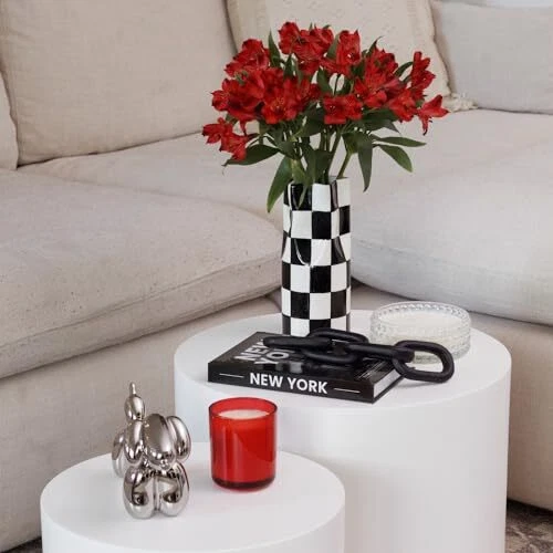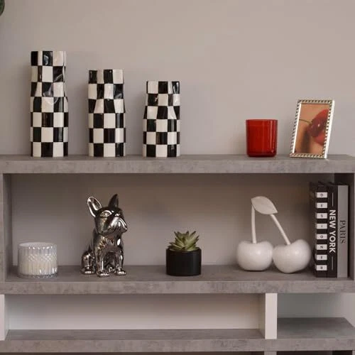30 Days Return Policy Fast Delivery Trusted seller Medium Checkered Vase, Modern Home Decor, Decorative Ceramic Flower Vase, Aesthetic Black & White Room Decor for Office, Bedroom, Living Room (9.25” Tall) Product Description HAND PAINTED CERAMIC VASE: A traditional vase with a modern spin, our hand-painted black & white checkered vase will complement home decor and stand out across the rest of your room aesthetic. Our checkered vase is a tall cylinder vase with a squeezed look at the top that opens with a wide star-shaped mouth. Not only does this allow your vase to hold a large floral arrangement but it also helps fan your blooms and dried grasses beautifully. AESTHETIC HOME DECOR: Showcase timeless elegance that’s versatile enough to blend with decades of interior design trends. Display our checkered vases in your home office, bedroom or living room. Use them standalone depending on the size of your floral arrangement needs or pair in a set-of-3 for a gorgeous, explosive flower extravaganza. HOME DECOR GIFTS: Whether you’re shopping for yourself or looking for a unique gift for friends or family, these checkered vases will be sure to impress. The black & white color is universal enough to pair with a diverse range of botanical styles. Try dried grasses, silk flowers or treat yourself to a personal flower Friday! DESIGNED IN THE USA: Our team partners with exclusive ceramic manufacturers that have decades of experience making premium ceramic products. We bring unique goods to the market that are custom modeled by our team of RD Home USA expert designers. : In a world w basic home décor is abundant, we aim to elevate spaces with unique style featuring room décor that's aesthetic, modern, and trendy. Our exclusive collection of interior goods are statement pieces that will curate an environment you love. Shipping Returns Payment Shipping Shipping is FREE to all addresses other than APO/PO boxes in the lower 48 states. All our stock ships from US-based warehouses. Shipped via USPS or UPS (depending on location and package weight) Unless stated otherwise, all orders will ship within 24-72 hours of your payment being processed. Check our feedback to see the great reviews of FAST shipping we offer. Returns As our valued customer, we will do our best to make sure the product you receive arrives to you on time and as expected. If you are not satisfied with your purchase, please contact us within 30 days of receiving your order to process a return. Payment We currently accept payment via eBay managed payments only. Once payment is cleared, we will dispatch your shipment within 1-3 business days. Please refer to the "Shipping" tab for more information regarding shipping speed to your destination.