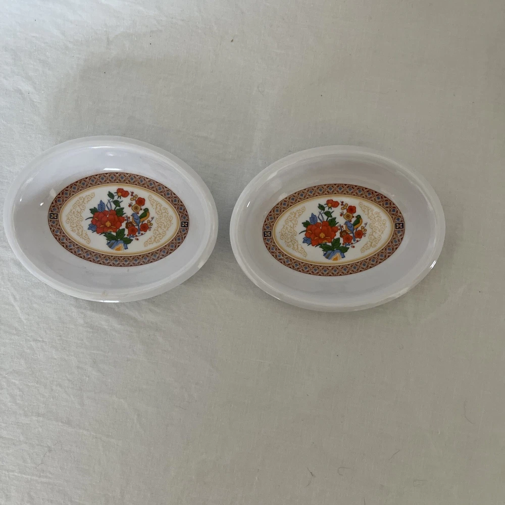 Melamine Ware ShunTa & TOMBOLO Set 4 Small Bowls Tea Bag Holders Sauce Flowers. Condition is Used. Shipped with USPS Ground Advantage.