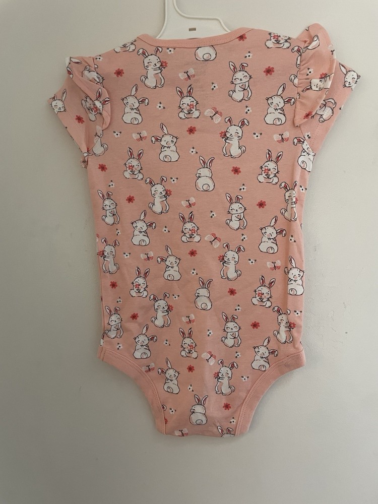 Member's Mark Baby Girls Cute Bunny Cotton Ruffle Short Sleeve Bodysuit Pink 24M. Condition is pre-owned. Smoke free, pet free home. Shipped via USPS Ground Advantage. In very good condition. Free of rips or stains.