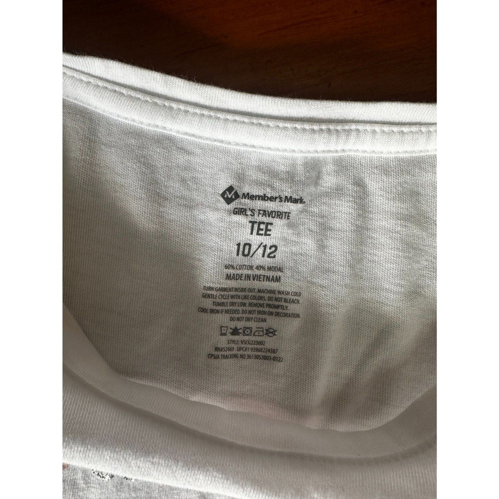 Cute and cozy Member’s Mark Girls Favorite Tee in size 10/12. White long sleeve shirt featuring a fun winter-themed graphic with colorful text including "Sweaters, Penguins, Snowflakes, Mittens, Icicles, Scarves." Perfect for layering during the colder months! Brand: Member’s Mark Style: Girls Favorite Tee Size: 10/12 Color: White with multicolor winter words graphic Material: 60% Cotton / 40% Modal Long sleeves, curved hem Great for casual wear, layering, or school outfits Condition: Pre-owned, gently worn, in good condition with no major flaws noted. #GirlsClothing #WinterStyle #GraphicTee #KidsFashion