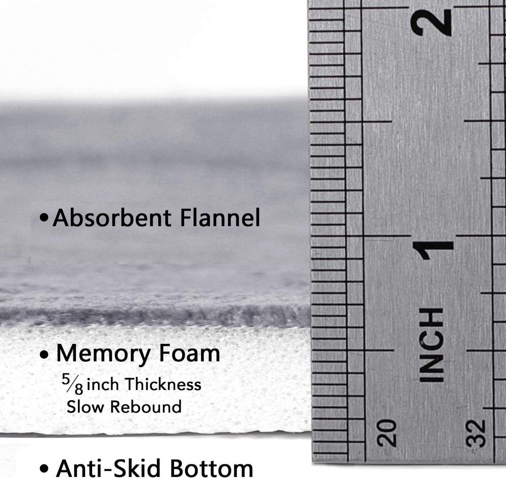 【Different production batches bring slight differences in packaging or rug bottom color】FOOT MASSAGE: These bath mat rug set is crafted from ultra soft coral fleece, fill into innovated memory foam. Backed with non slip rubber bottom, strong and durable. Put your feet out of the shower on these bath runner to give your feet the warm, comfortable home SPA feeling GREAT ABSORPTION: These cozy plus bath mats/rugs have been used with special technology on quick absorbent and fast drying. Spruce up your powder room for maximum serenity and warmth ANTI-SLIP: Our 2.0 new version non-skid, no slip, PVC rubber backing is waterproof, perfect use on hardwood floor or floor ties, hassle free for water dampness. Skid-resistant rubber base ensures that the bath mat grips firmly to the floor for safety STANDARD MEAS: These luxurious bath rugs for bath room/kitchen/entry are constructed with dimensions 24 inches wide x 17 inches long. Features 1 inch of high density and thickness premium memory foam, vary with multi colors and patterns EASY CLEANING: Machine wash separately in cold water using mild detergent. Use only non-chlorine bleach when needed. Also you can simply pick up and shake rug to freshen. Enjoy the ultimate performance bath rugs/mats from USPTO brand