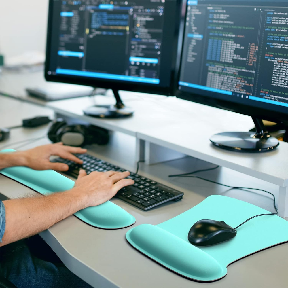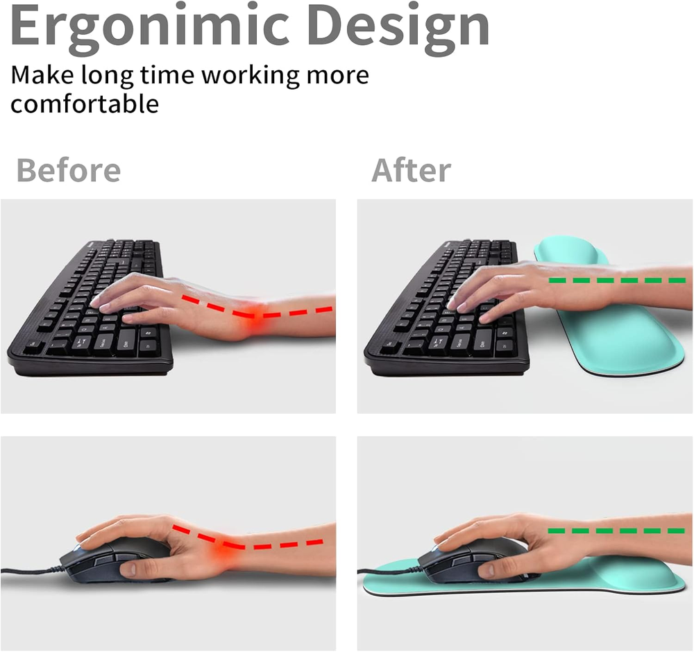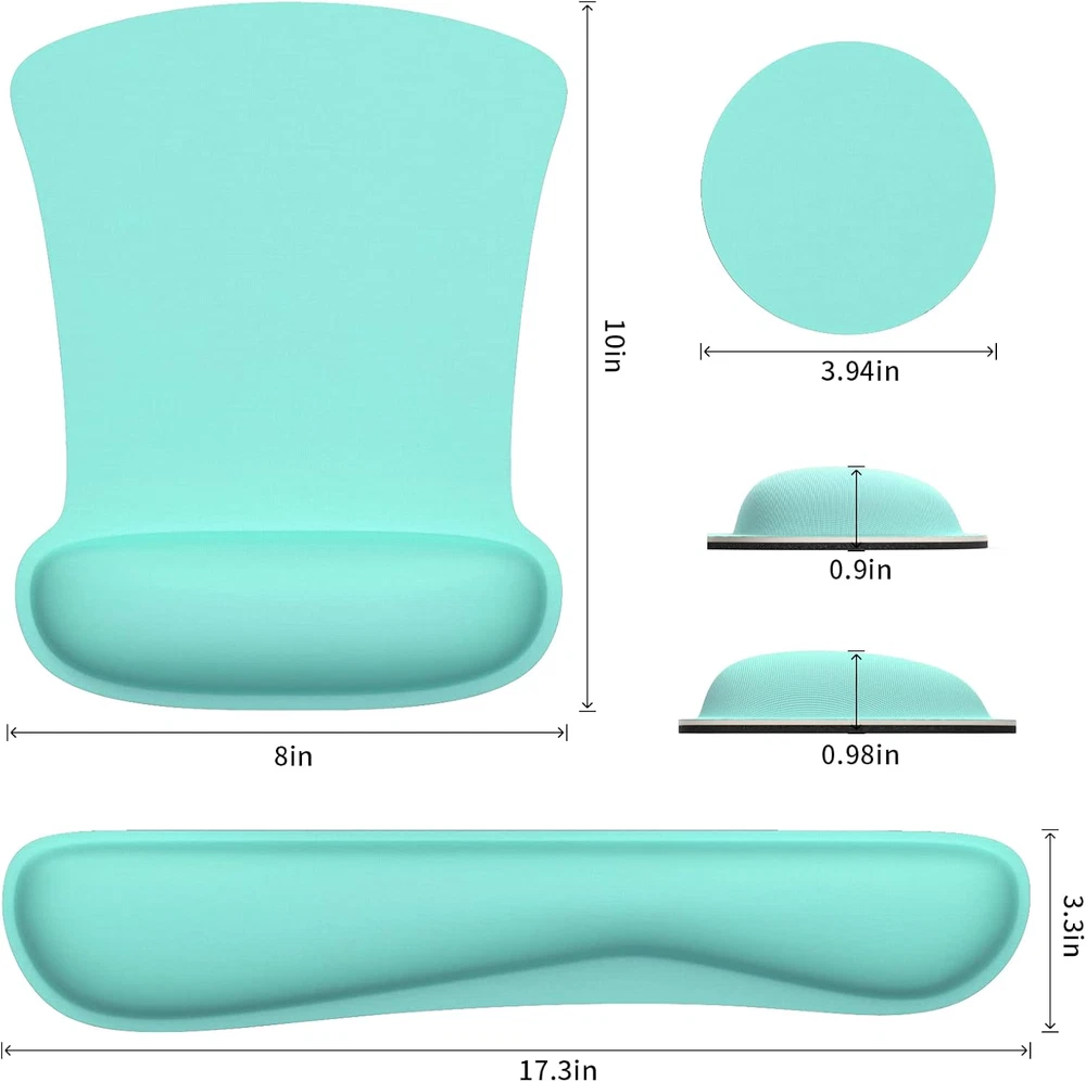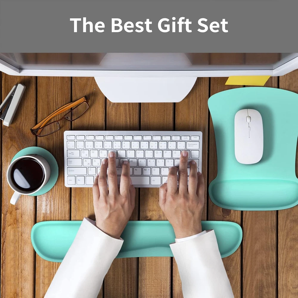 1. Absolutely love this set! The memory foam is so comfy for my wrists during long work hours, and the non-slip base keeps everything perfectly in place. The cute malachite green color brightens up my desk, and it's been a lifesaver for reducing typing pain. Highly recommend!