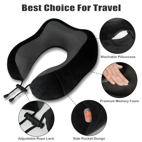 This travel pillow is a game-changer! The memory foam provides amazing support, and the soft velvet feels luxurious against my skin. Perfect for long flights—keeps my neck comfy without sinking too much. Love the included eye mask and earplugs for extra relaxation. The compact design makes it easy to carry, and it arrived super fast. Definitely a must-have for frequent travelers!