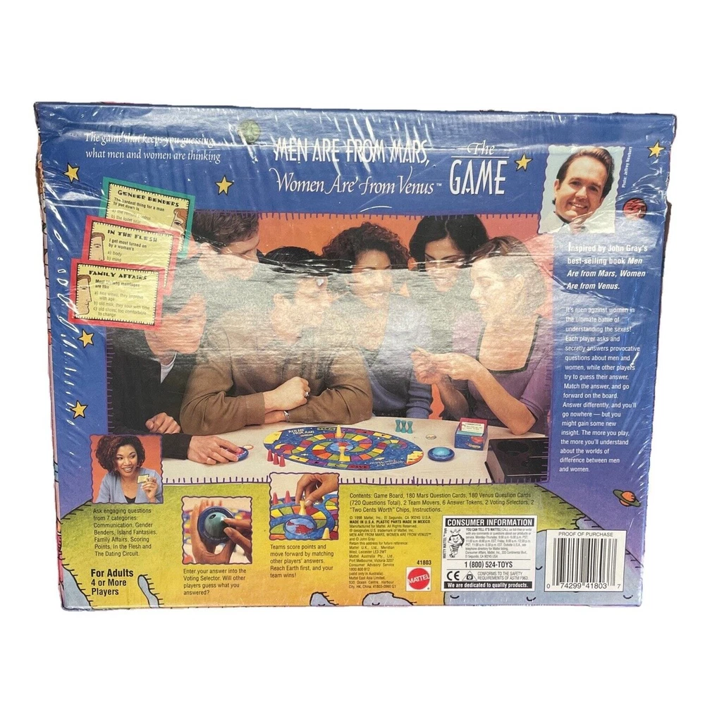 Own a Men Are From Mars, Women Are From Venus Board Game 1998 Mattel! The outrageous game that will change the way you see the opposite sex! This game is still in the factory sealed packaging so it is brand new!