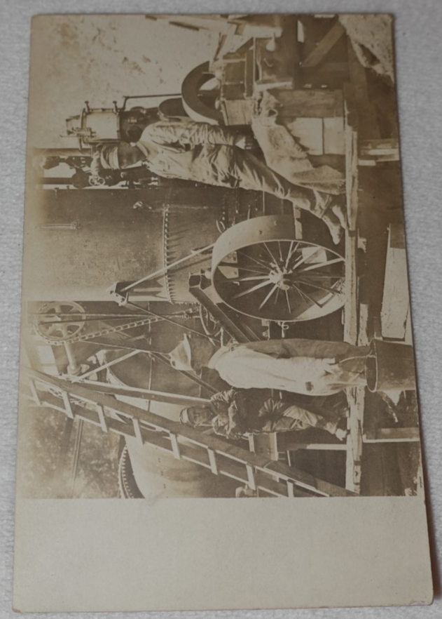 Men Industrial Workers Machinery Antique Original RPPC Postcard Measures approximately 3 1/2" x 5 1/2". Item has writing and marks on the reverse side. Postcard is in antique condition with dinged edges and corners, surface scratches, creasing, age discoloration and marks. Please see photos for more information on condition and ask any questions you may have.