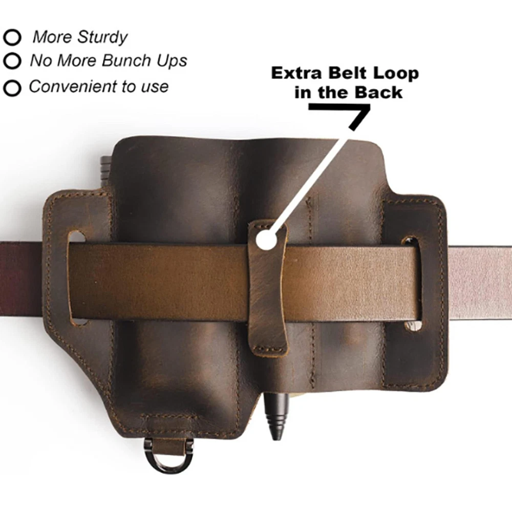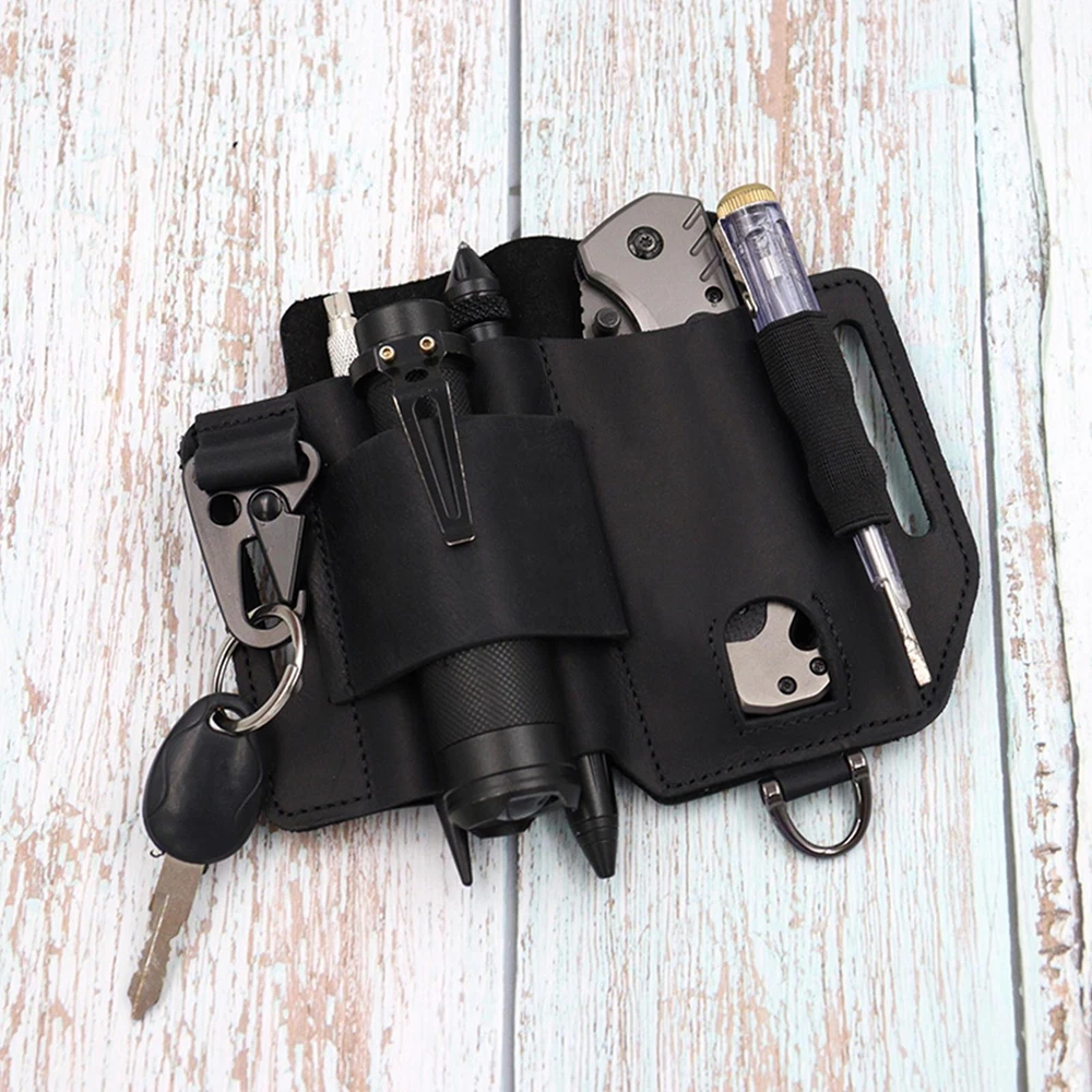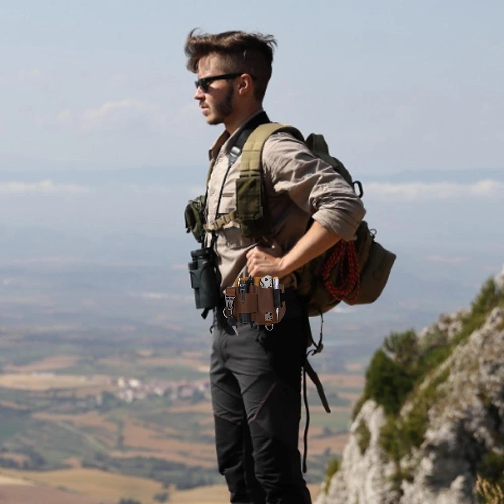 Bullet Points: Long-lasting: This multifunctional EDCs tool holster is made of cowhide material that is sturdy and durable. It resists tearing and keeps your tools secure and safe. High-capacity: This holster can hold different tools and gadgets with its large capacity and good compatibility. You can easily carry your flashlight, knife, pen, screwdriver and more in this holster. It has enough space for everything you need and more. Keep Neat: With this EDCs tool holster, you can store your multitool, flashlight, pen, and key fob in a place and avoid clutter. Just clip it on your belt and you're ready to go Fixed firmly: The holster also has a gentle cushion inside to avoid scratching and offer extra protection for your tools. The EDCs tool holster is the perfect accessory for your tools. Widely used: It is suitable for different occasions and needs. This EDCs tool holster is versatile and can hold various tools such as knives, flashlights, pens, scissors and more. EDCs Tool Holster: A durable and spacious accessory for your everyday carry items. Keep your tools tidy and accessible with this holster that fixes firmly to your belt or bag. Versatile use for camping, hiking, or work. Material: Cowhide Size: 18*15cm/7.08*5.90in Weight: 100g Color: Brown List: EDCs Multitool & Flashlight Holster *1