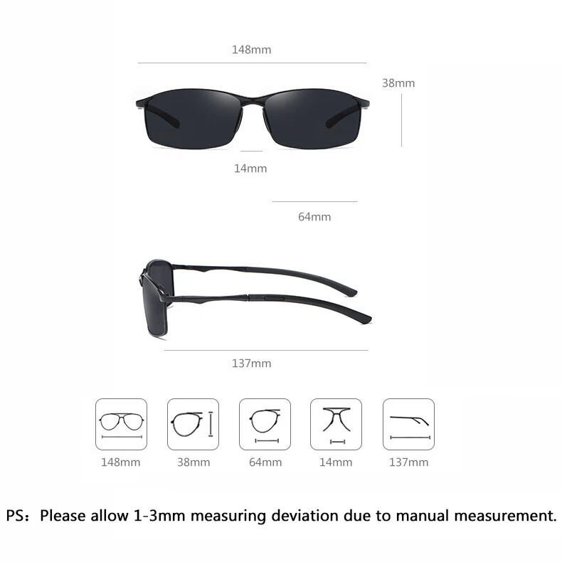 Men Metal Tinted Myopia Nearsighted Glasses Square Polarized Lens Sunglasses New Description Brand: FELRES Frame Material:Metal Lenses Material: Resin Eye-wearType: Myopia glasses Gender: Men Lens width: about 64 mm Lens height:about 38 mm Bridge : about 14 mm Frame Width: about 148 mm Temple Length:about 137 mm Package includes: 1 * Myopia Glasses (Not contain box and other accessories) Note: 1. Due to the different monitor and light effect, the actual color of the item might be slightly different from the color showed on the pictures. Thank you! 2. Please allow 1-3mm measuring deviation due to manual measurement. Model 559 Type Nearsighted Glasses MPN Does Not Apply Frame Material Metal Brand FELRES Department Men Style Square Features Full Frame Country/Region of Manufacture China Theme Classic, Designer, Outdoor Lens Technology Tinted UV Protection UV400 Lens Material Resin Lens Width 64 mm Lens Height 38 mm Bridge Width 14 mm Frame Width 148 mm Temple Length 137 mm Year Manufactured 2020-2029