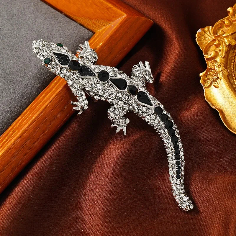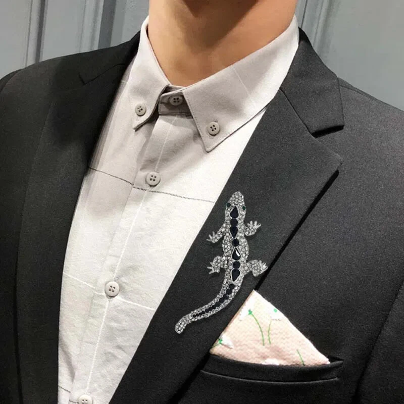 Men Personality Alloy Big Rhinestone Lizard Brooch Fashion Men's Accessories