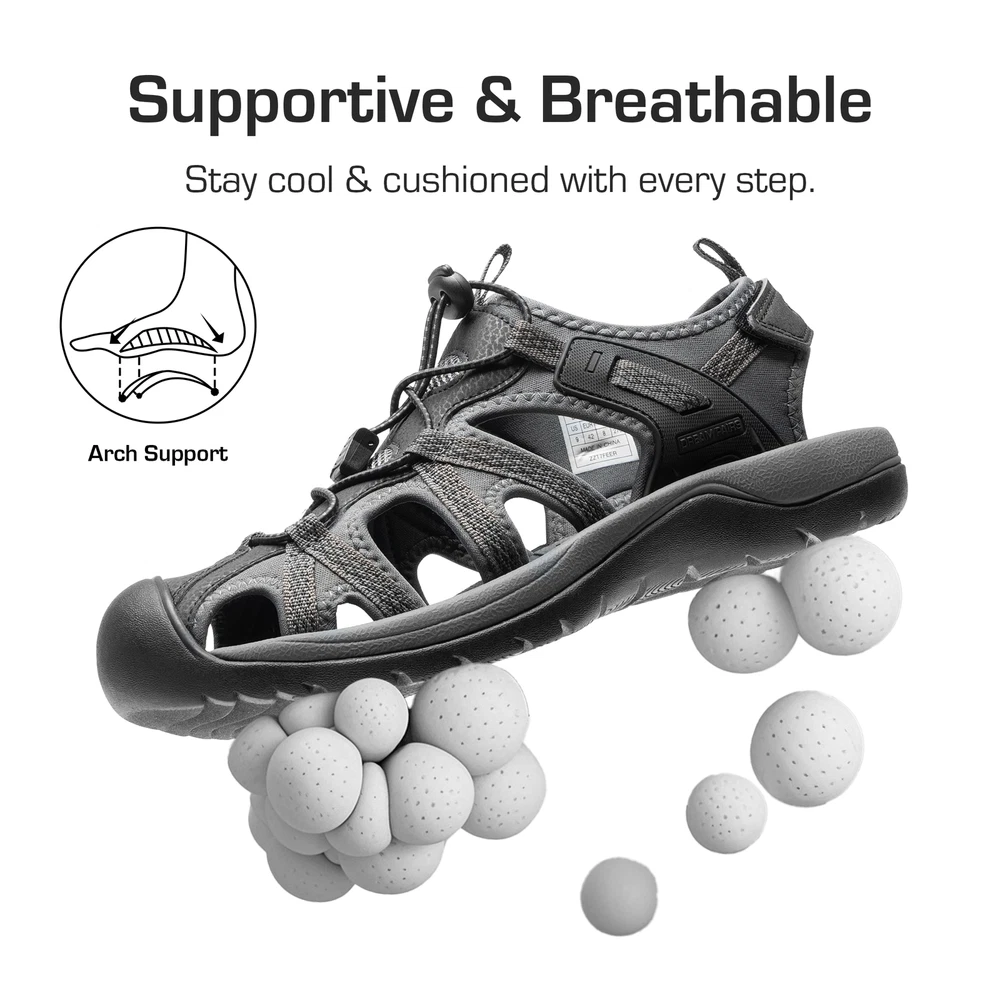 About this item Durable & Breathable Materials : Made from synthetic leather, webbing, and mesh. Comfort & Cushioning : EVA footbed and TPR sole for steady steps on various terrains. Custom Fit : Elastic closure for quick and easy on/off with consistent comfort. Protection & Stability : Closed-toe design with slip-resistant TPR sole. Quick-Dry & Easy Care : Breathable mesh that dries fast and is easy to clean. All-Day Wear : Lightweight and versatile, suitable for hiking, vacation, or everyday use. Payment Shipping Return Contact us Feedback Payment 1.Payment must be received within 7 business days of auction closing. 2.We ship to your eBay or Paypal address. Please make sure your eBay and Paypal address is correct before you pay. Shipping 1. We try our best to ship out same day for payment cleared before 5.00 PM (Pacific Time) 2. Order placed on weekend or holiday will be shipped on Monday or next working day. Return 1.We offer 30 days return policy. Please contact us within 30 days from the date you receive your order if you have any issues with the product and want to return. 2.All items must be returned in the original packaging and you must provide us with the tracking shipping number, specific reason for the return, and your eBay ID. 3.We will refund you FULL WINNING BID AMOUNT, upon receipt of the item in its original condition and packaging with all components and accessories included, AFTER BOTH Buyer and Seller cancel the eBay transaction. Or, you can choose to get a replacement Contact us All communication is done through EBAY MESSAGES ONLY. If any question, please feel free to contact us via "Ask seller a question" or "Contact Seller",We try our best to reply to your emails as soon as possible, due to high volume of daily incoming emails and time zone difference, we may not be able to reply your emails immediately. Please allow 1-2 business days for us to response. Feedback When you receive the item and satisfied with the product, please leave us positive feedback. If for any reason you are not satisfied with your purchase from us, please contact so we can get to work and resolve this issue for you. Please don't leave neutral or negative feedback without giving us an opportunity to try and make it right. Our goal is to ensure a happy shopping experience with us. Your Positive feedback is very much appreciated!