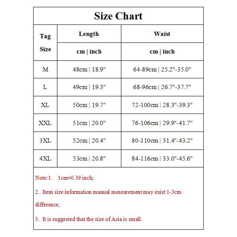 Specifications: 100% Brand new and high quality. Size:M,L,XL,XXL,3XL,4XL Color: as show Material: Polyester Waist Type: Mid Pattern:Floral Season:summer Note: 1.Due to the light and screen difference, the item's color may be slightly different from the pictures. Please understand. 2.Please allow 2-3% error due to manual measurement.Please make sure you don’t mind before you mid. 3.Size doesn’t fit all.Please carefully check size chart and select the size based on your real size. Care Instructions: Wash before wear Cold gentle machine wash Do not bleach Do not tumble dry Drip dry Package:1 pcs short Size Chart Tag Size Length Waist cm | inch cm | inch M 48cm | 18.9'' 64-89cm | 25.2''-35.0'' L 49cm | 19.3'' 68-96cm | 26.7''-37.7'' XL 50cm | 19.7'' 72-100cm | 28.3''-39.3'' XXL 51cm | 20.0'' 76-106cm | 29.9''-41.7'' 3XL 52cm | 20.4'' 80-110cm | 31.4''-43.2'' 4XL 53cm | 20.8'' 84-116cm | 33.0''-45.6'' Note:1. 1cm=0.39 inch; 2. Item size information manual measurement may exist 1-3cm difference; 3. It is suggested that the size of Asia is small.